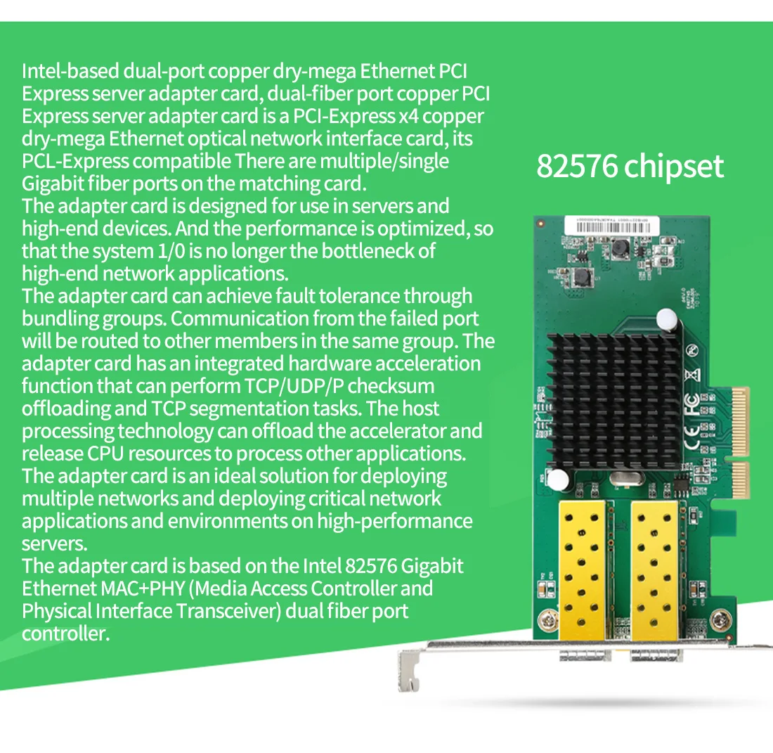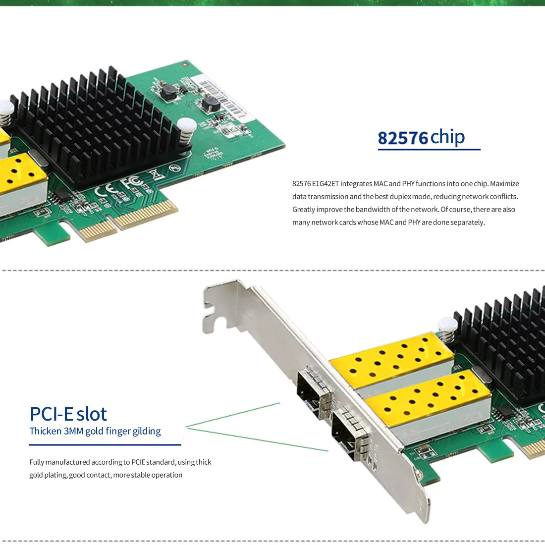 2 порта SFP гигабитная карта оптоволоконная сетевая карта PCIe 4x8x 1G10G Серверная Lan Карта 101001000Мбитс Ethernet контроллер
