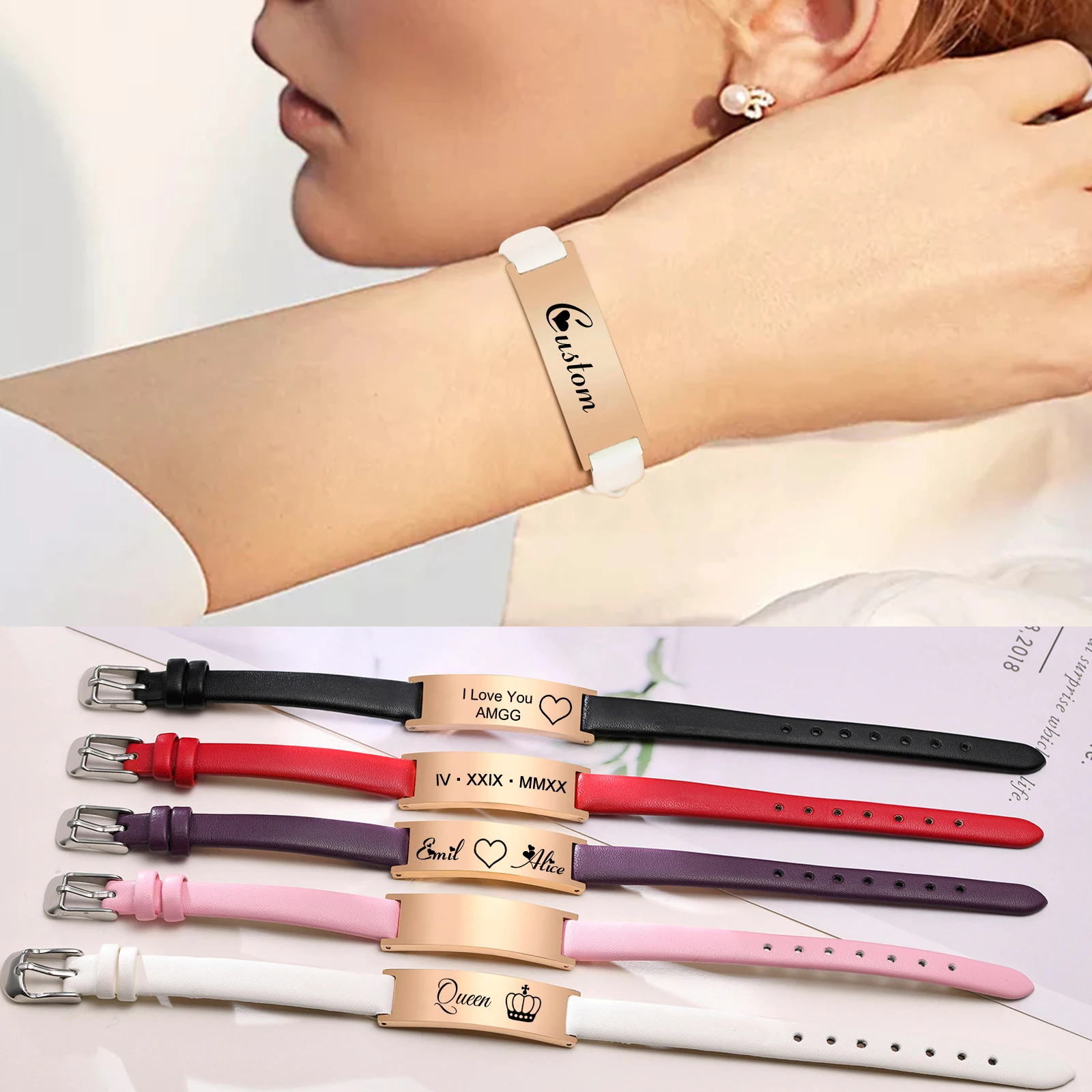 UniqueWomen Leather Bracelet, free engraving ID bracelet