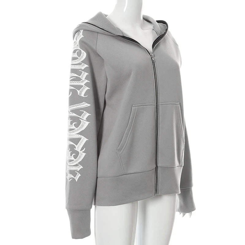 Худи на молнии, уличная одежда с буквенным принтом, Женские куртки ...