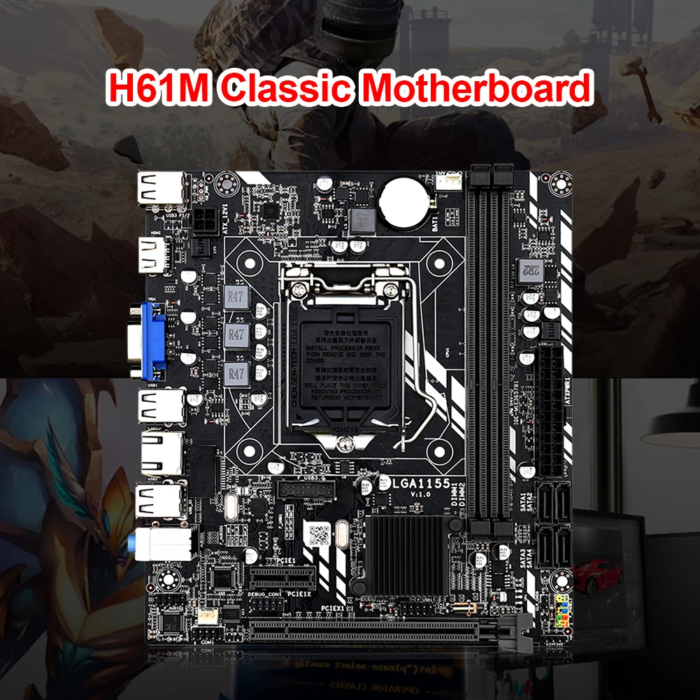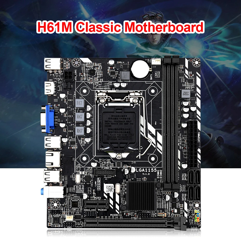 Материнская плата H61M DDR3 USB2.0 для настольного компьютера, материнская плата PCI-E 8X M-ATX LGA1155, плата с поддержкой Intel Core i7i5i3Pentium