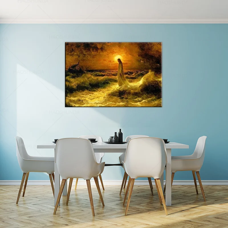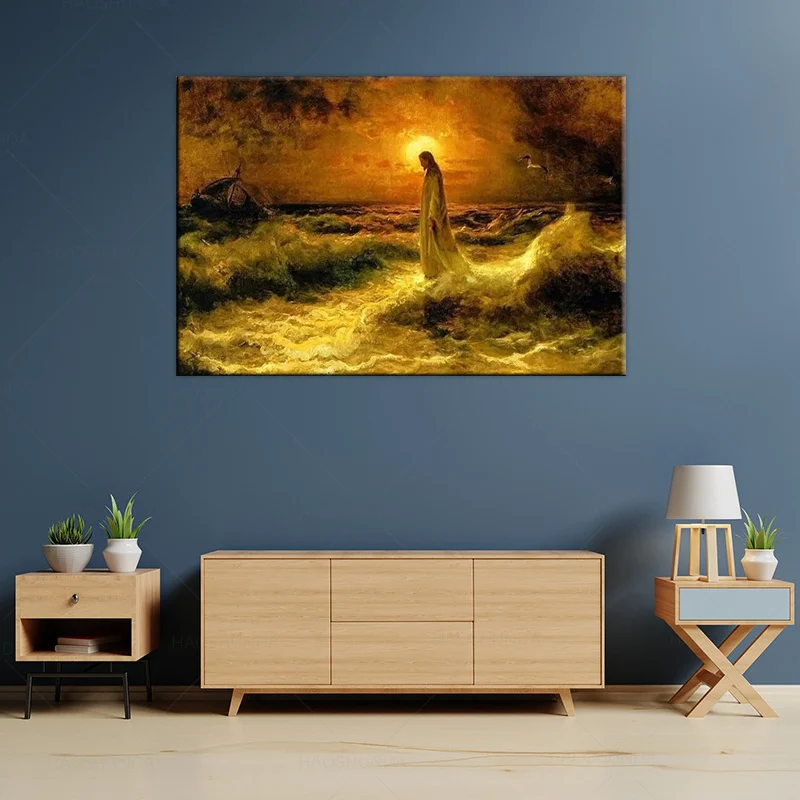 Плакат с Христом Иисусом ходящим по воде, картина с Иисусом, печать на холсте, настенное искусство, Декор для дома, настенная роспись, забавный подарок на новоселье