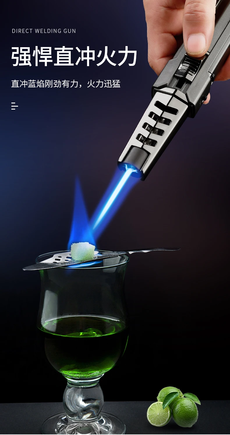 Бутановая газовая зажигалка с распылителем, металлическая горелка, турбина с синим пламенем для барбекю, ветрозащитная Зажигалка для сигарет, аксессуары для сигарет, кухонные инструменты