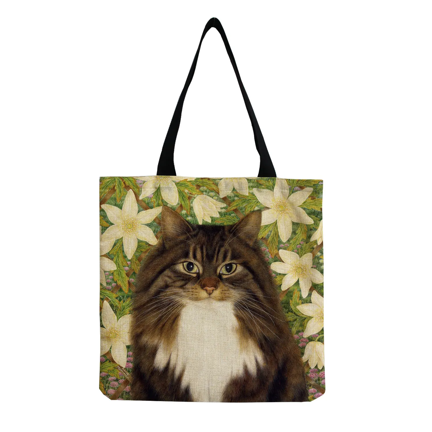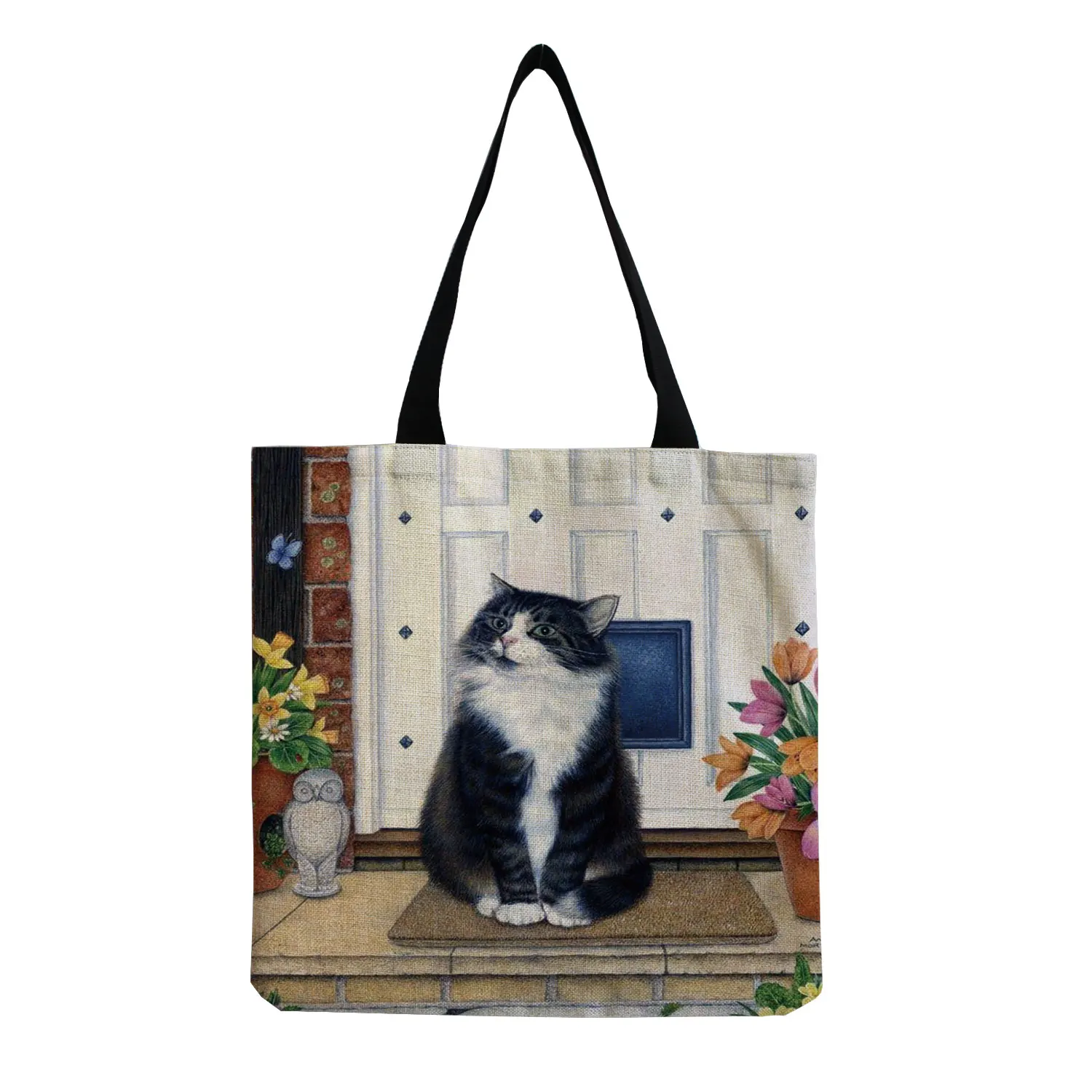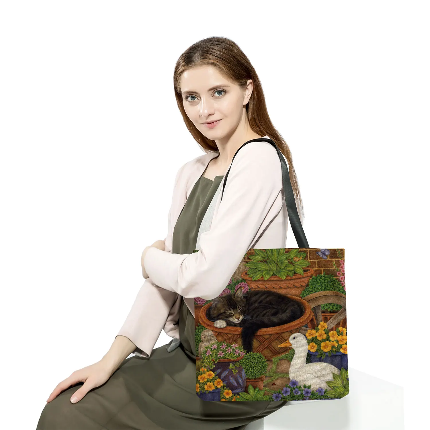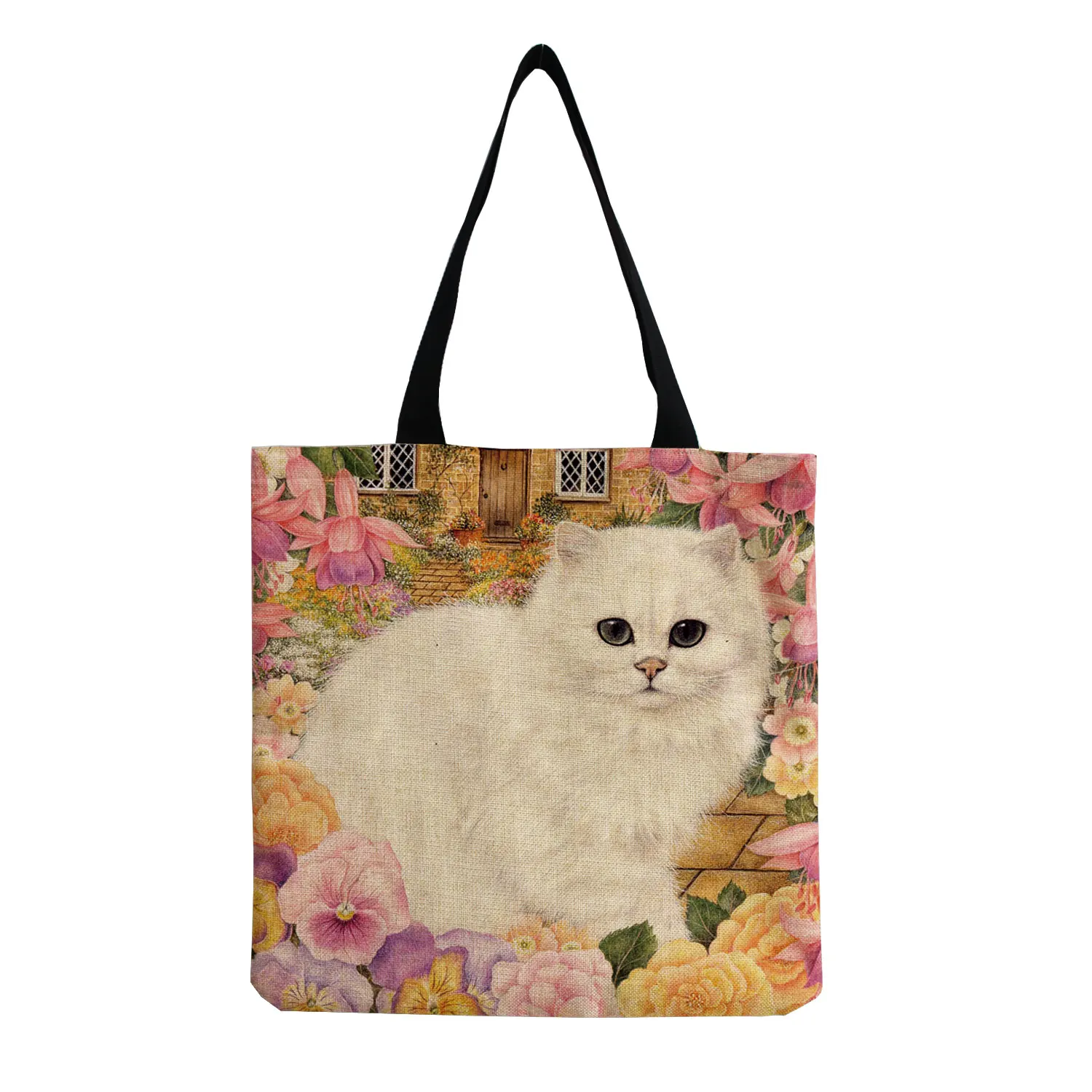 Женские дизайнерские сумки-тоуты с милым котом и цветочным принтом, женская сумка, Большая складная сумка для покупок для продуктов, кухонные сумки