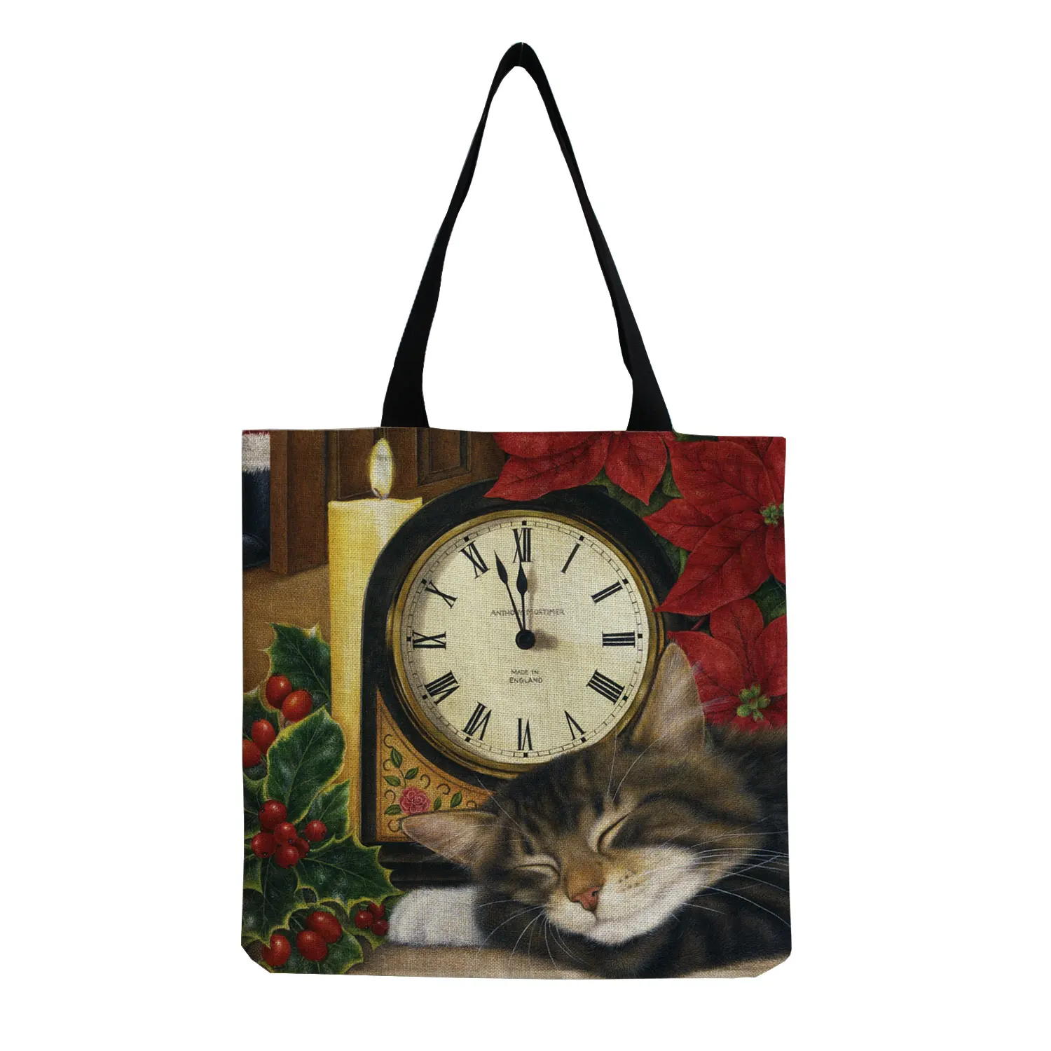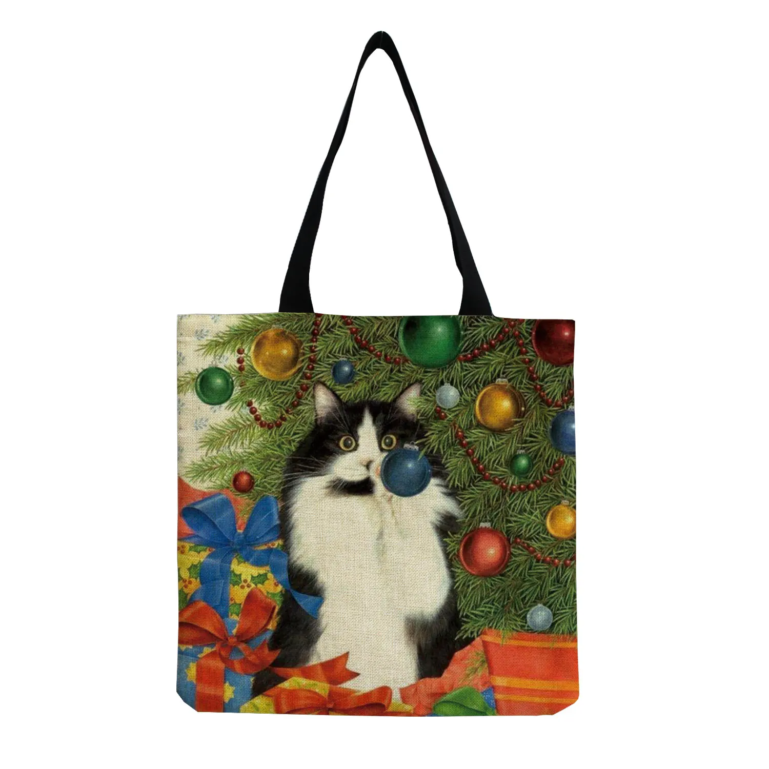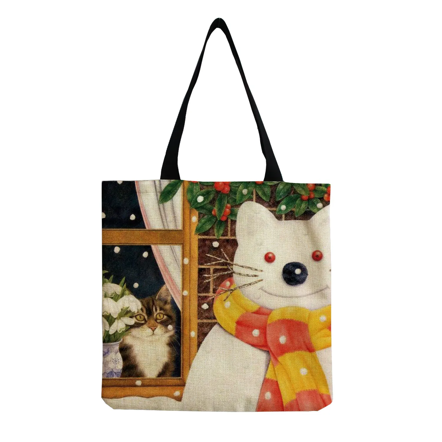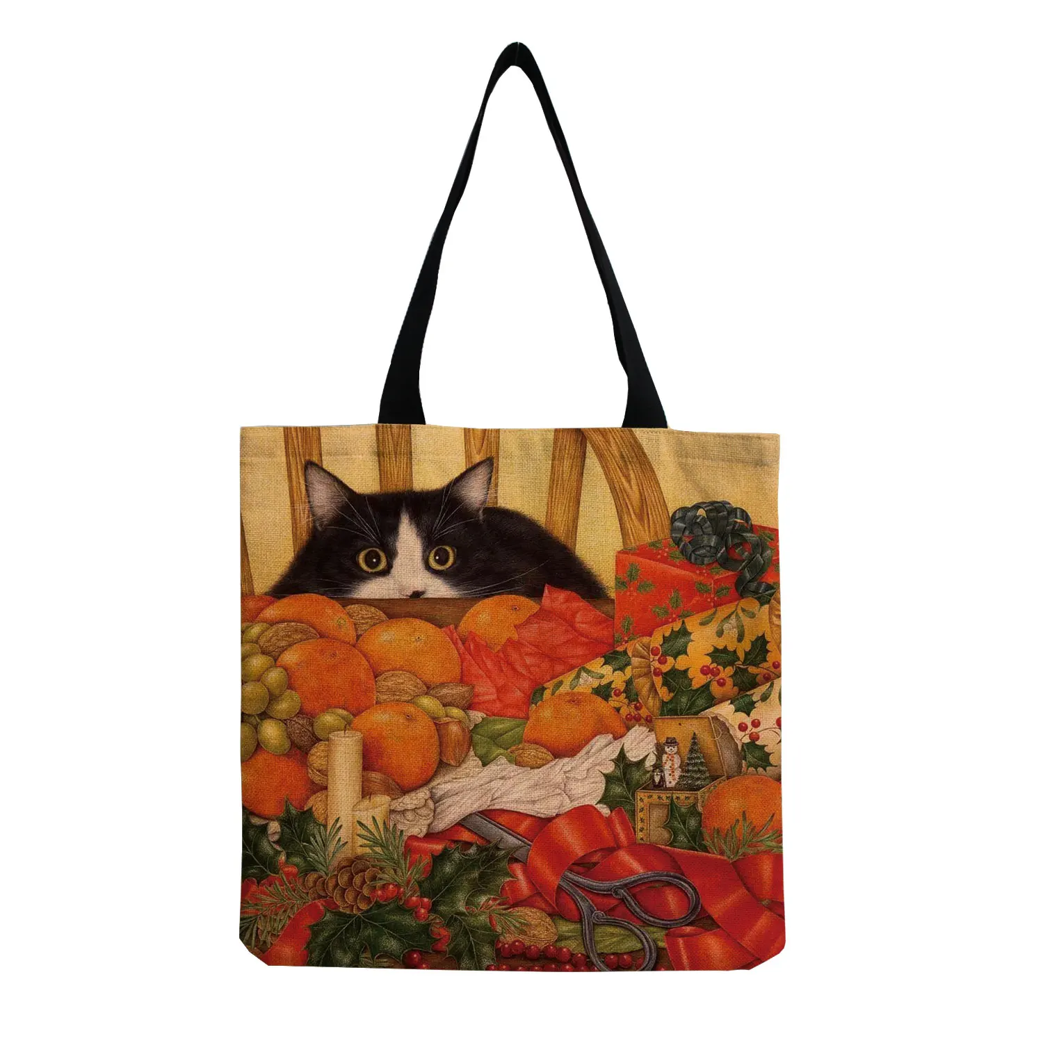 Женские дизайнерские сумки-тоуты с милым котом и цветочным принтом, женская сумка, Большая складная сумка для покупок для продуктов, кухонные сумки