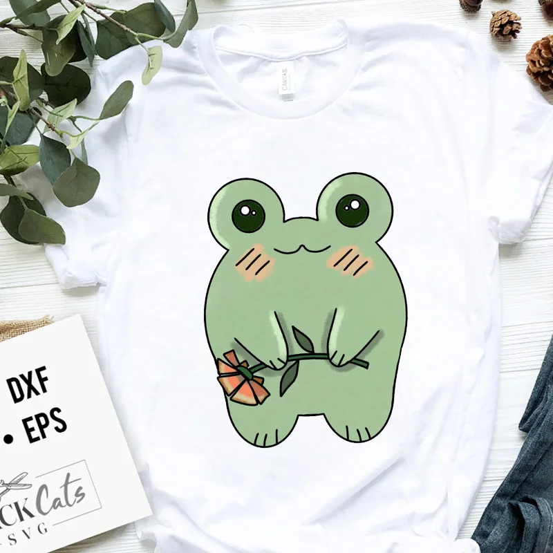 Женская футболка с принтом лягушки, белая футболка с графическим принтом, базовая одежда с милым принтом, лето 2021