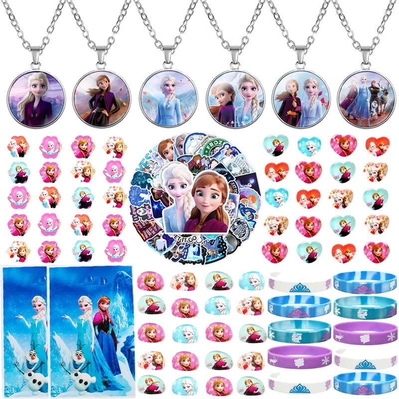 174 шт. сувениры для вечерние НКИ Холодное сердце включают в себя Подарочный пакет, браслет, ожерелье, кольца, штампы, наклейки для девочек, подарки на день рождения, товары