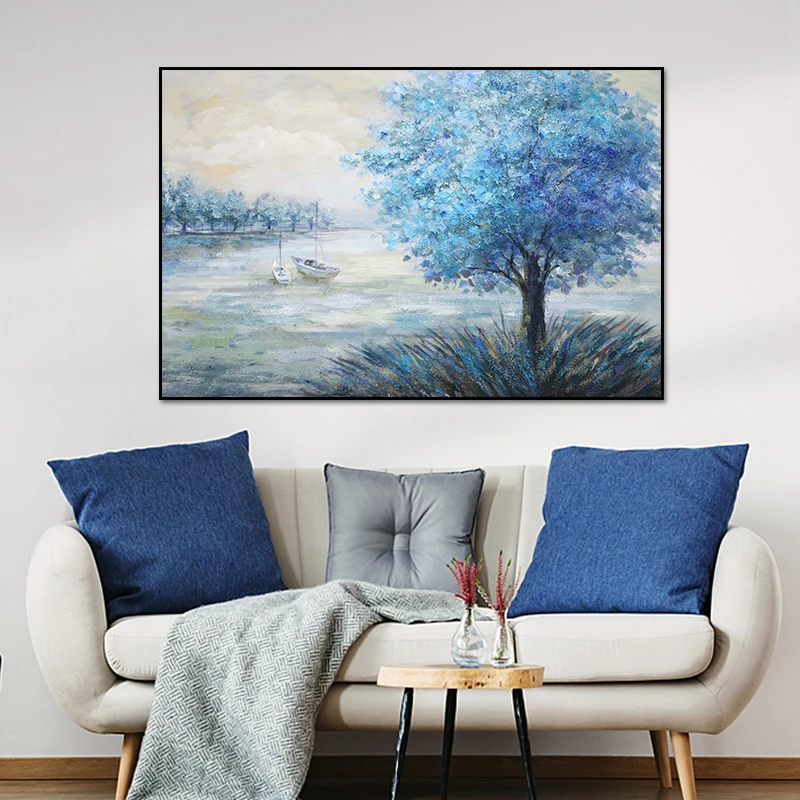 Золотисто-розовое синее дерево винтажные настенные картины красивый пейзаж холст для интерьера картины плакаты принты Декор для гостиной