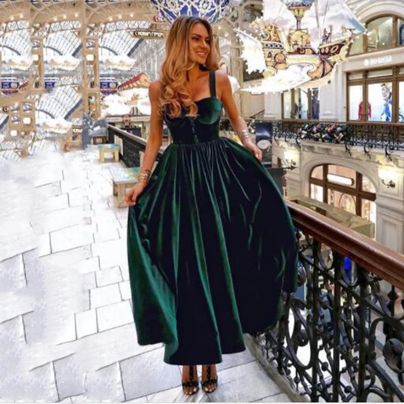 Простые зеленые вечерние велюровые платья, элегантные велюровые короткие платья для выпускного вечера, платья длиной ниже колена для особых случаев, новинка