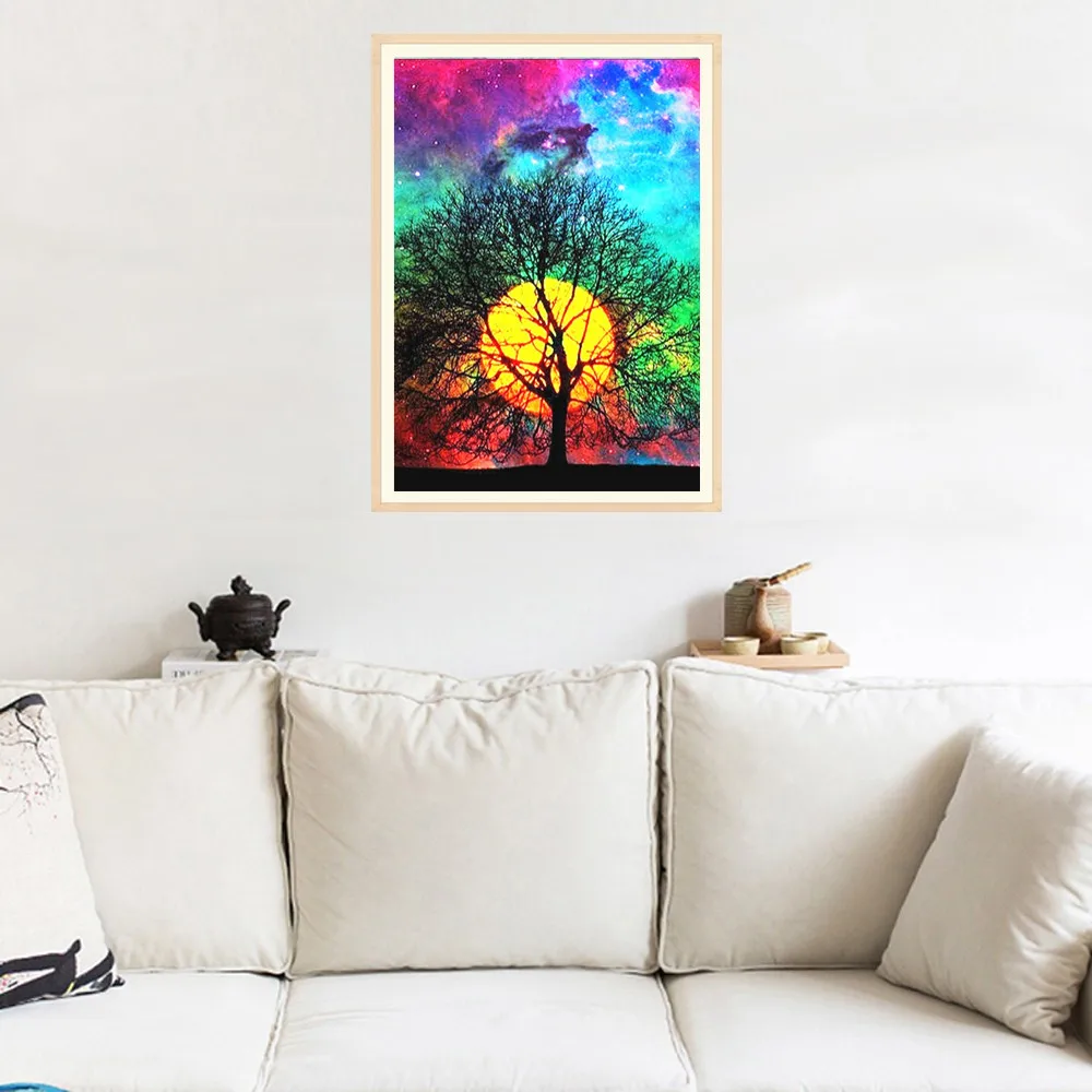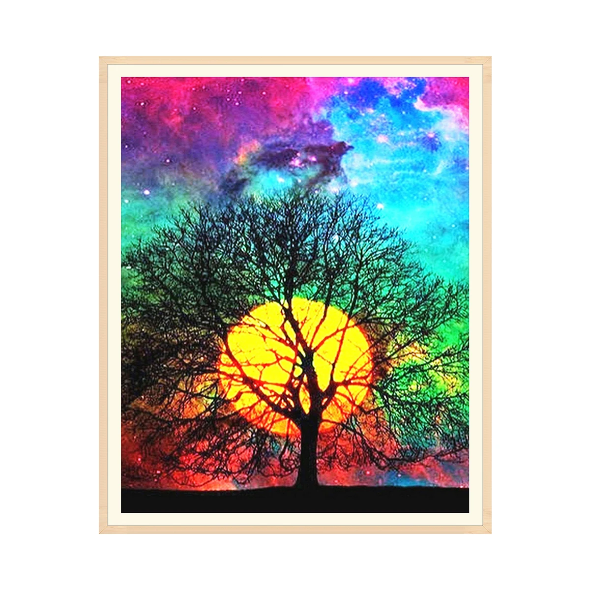 Полноформатная алмазная живопись, луна, дерево, 5D искусство, едино...