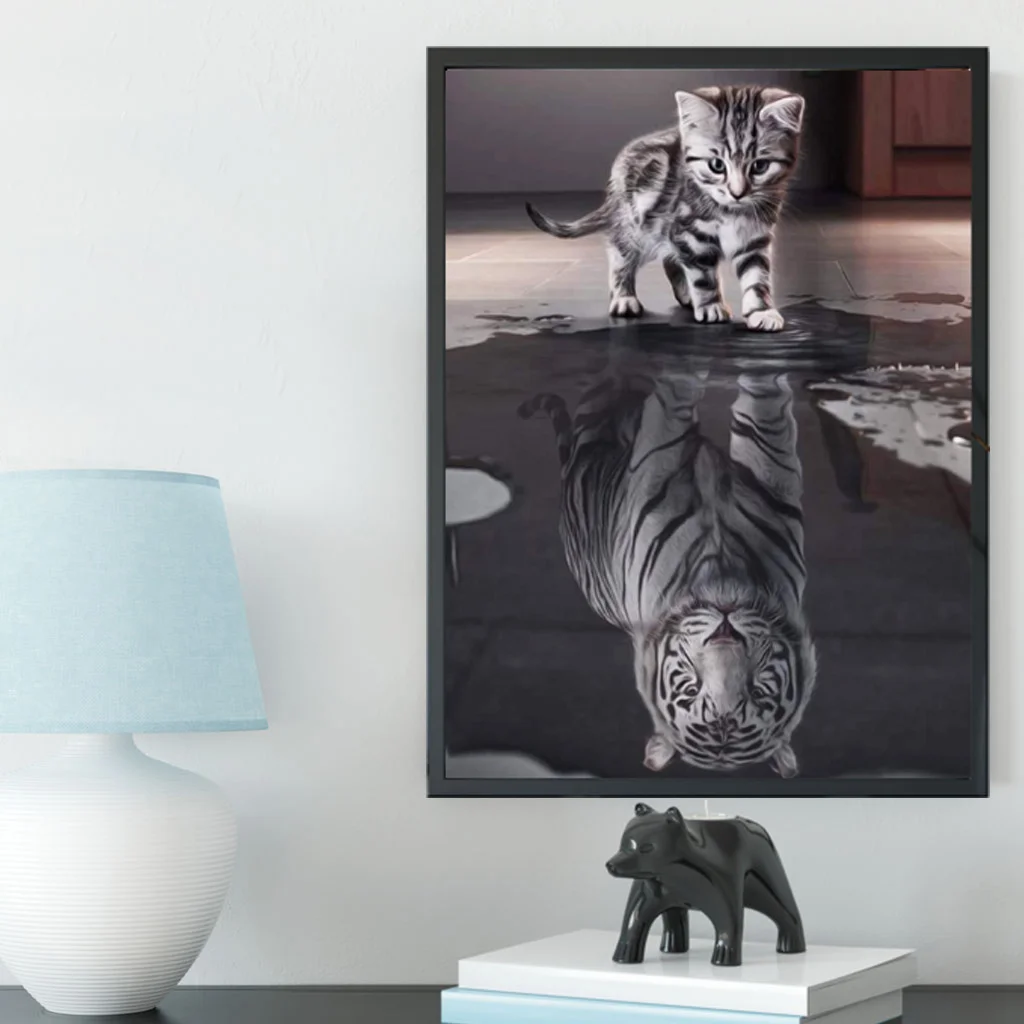 5D цвет кошка отражение тигр полная алмазная вышивка животное горны...
