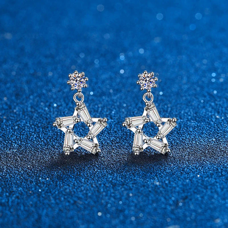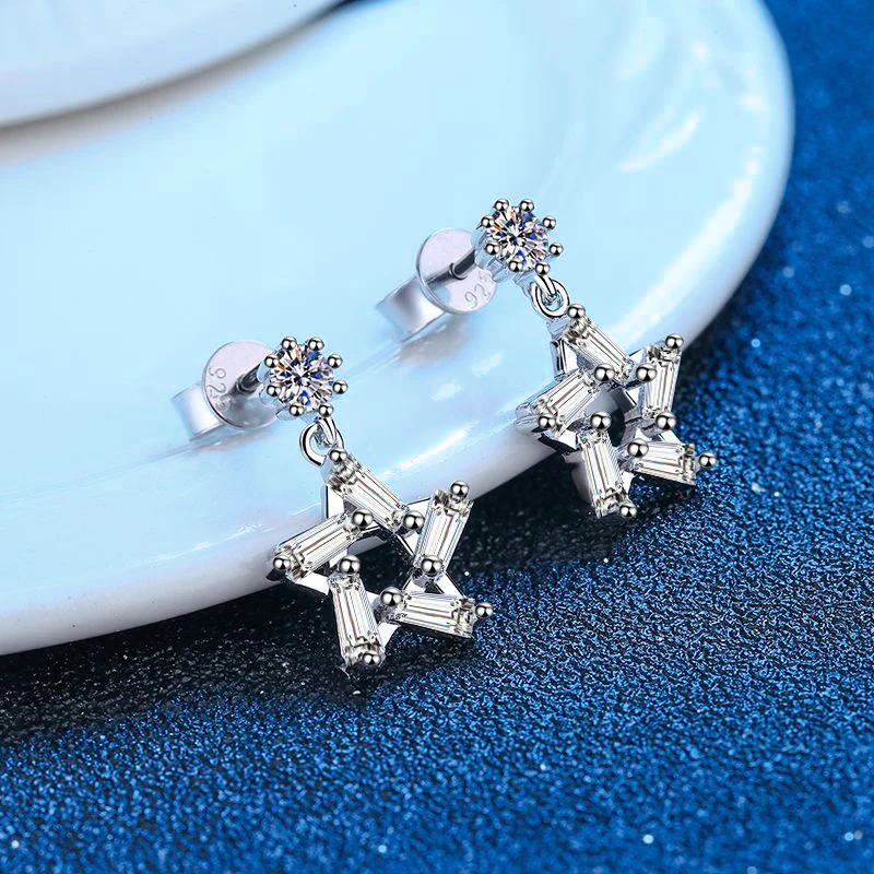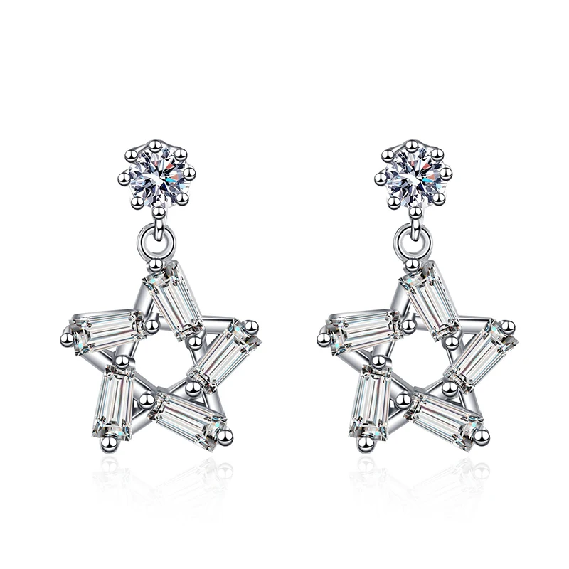 Настоящий Муассанит Серьги в виде капель серьги в наборе из стерлингового серебра и VVS D Цвет Алмаз серьги 3D Star Висячие серьги Свадебные украшения