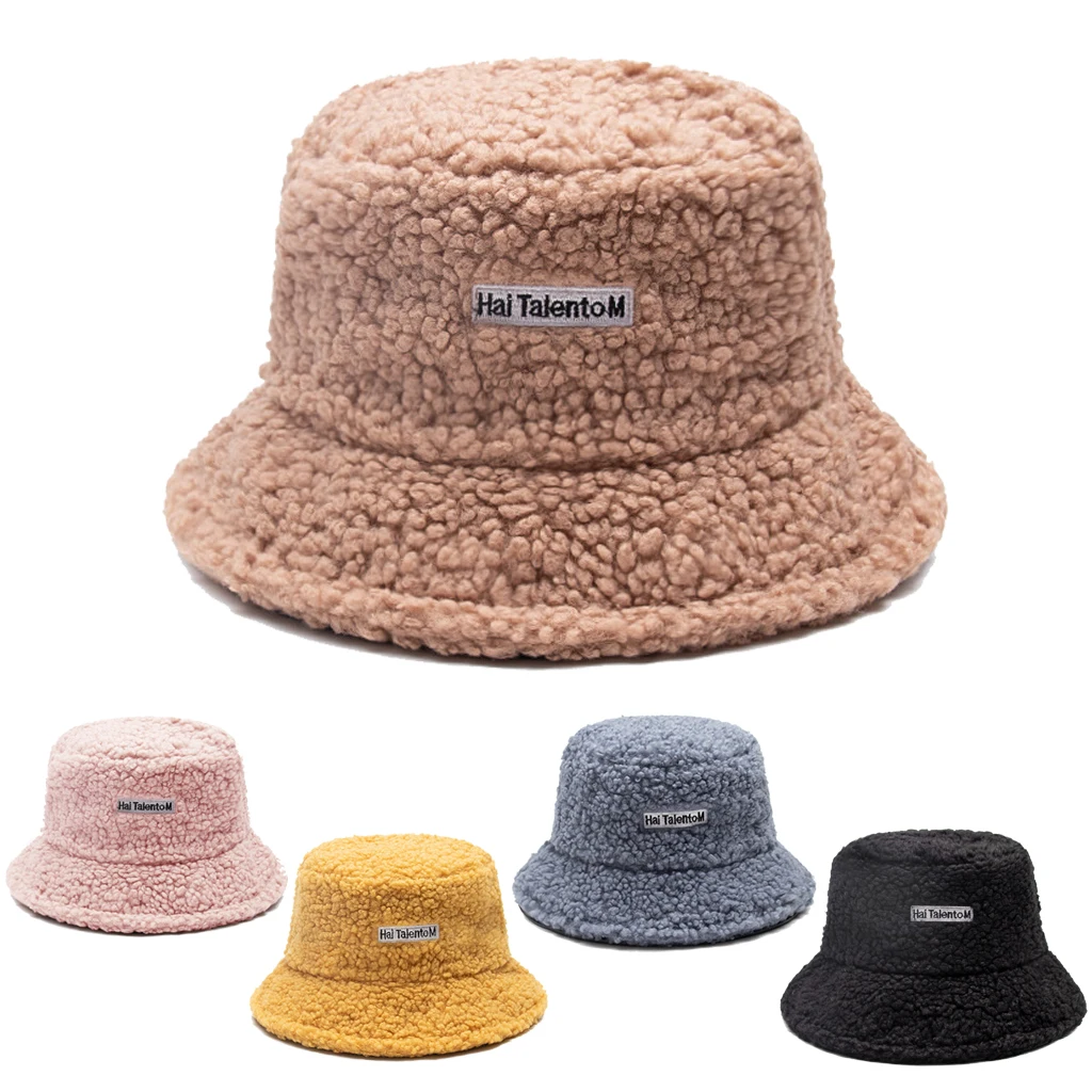 Панама женская плюшевая из ягненка и шерсти, толстая шапка-ведро, К...