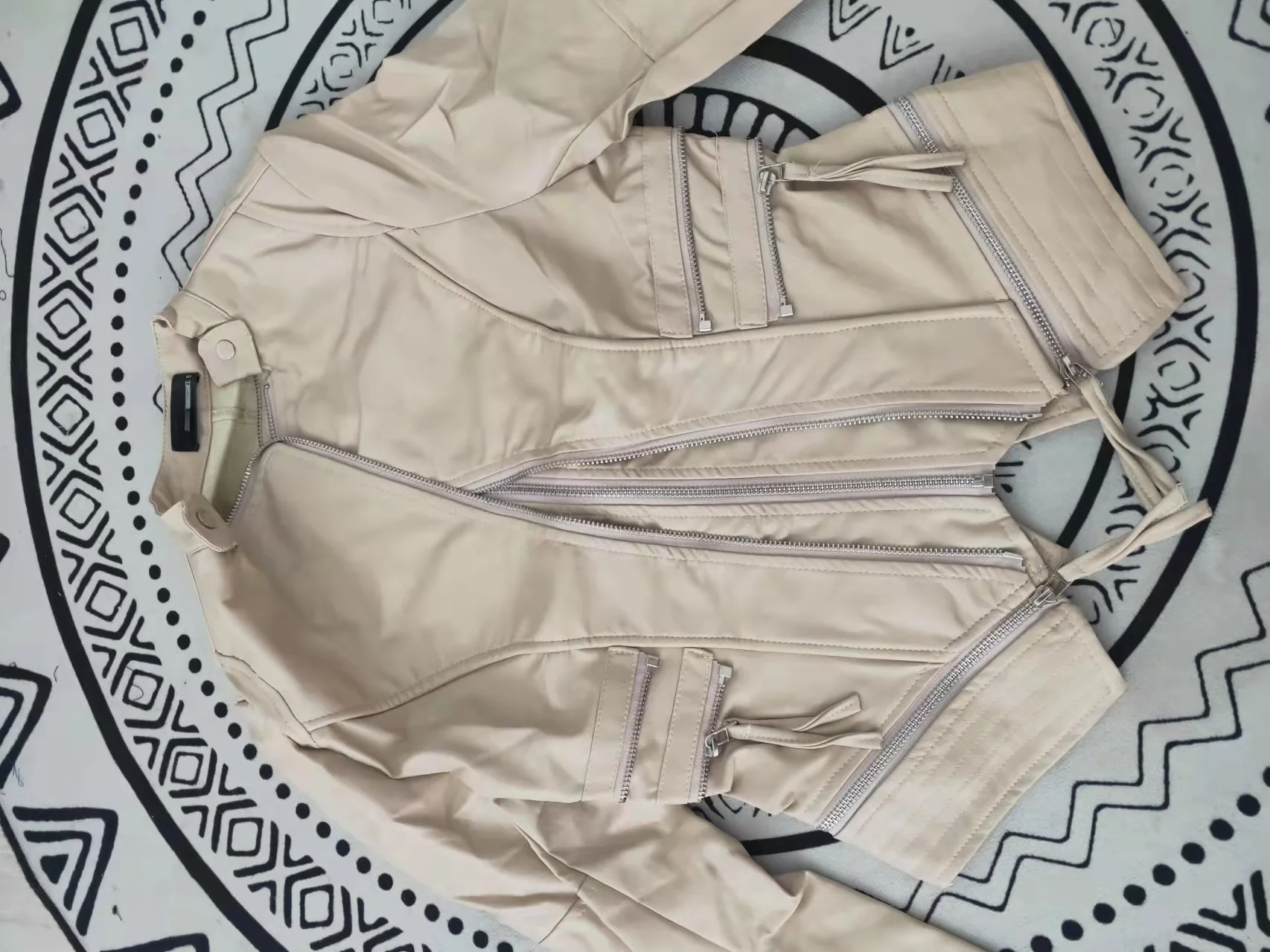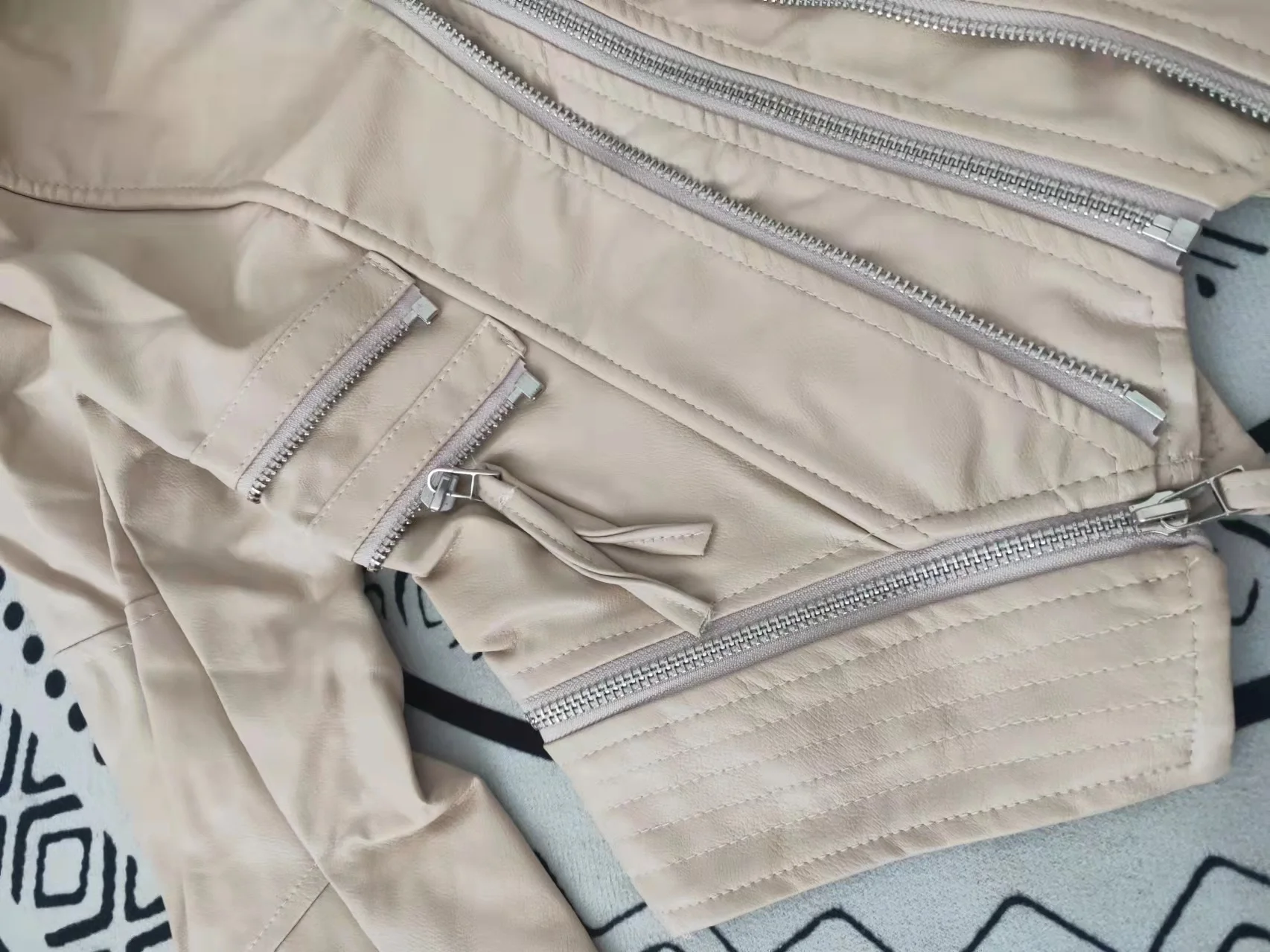 Женская кожаная куртка на молнии, демисезонная байкерская куртка из искусственной кожи с отложным воротником и длинным рукавом, 2021