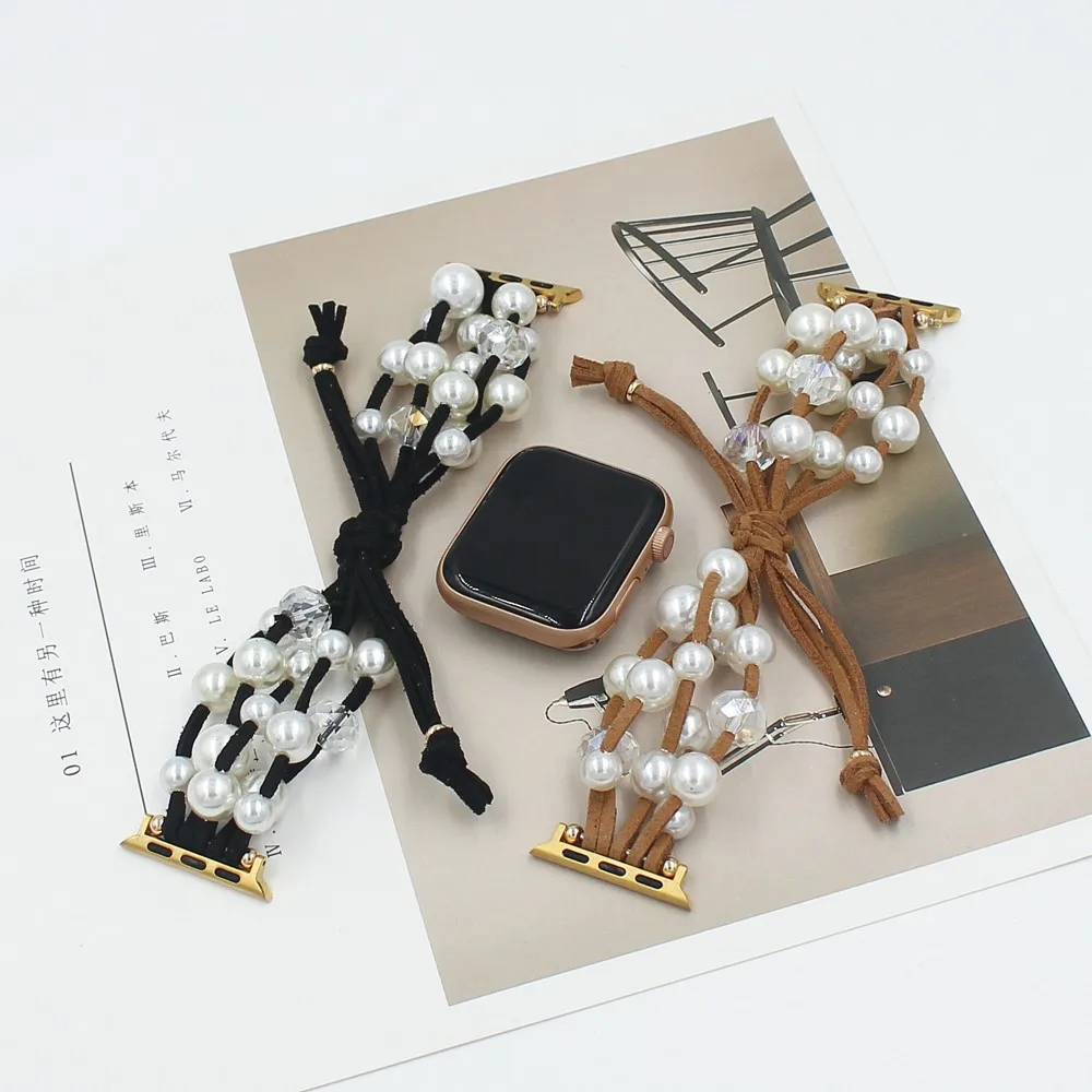 Женский браслет для Apple Watch, ремешок для часов, 7, 6, SE, 5, 4, 3, с жемчугом и кристаллами, 41 мм, 45 мм, 40 мм, 44 мм, 42/38 мм, металлический ремень