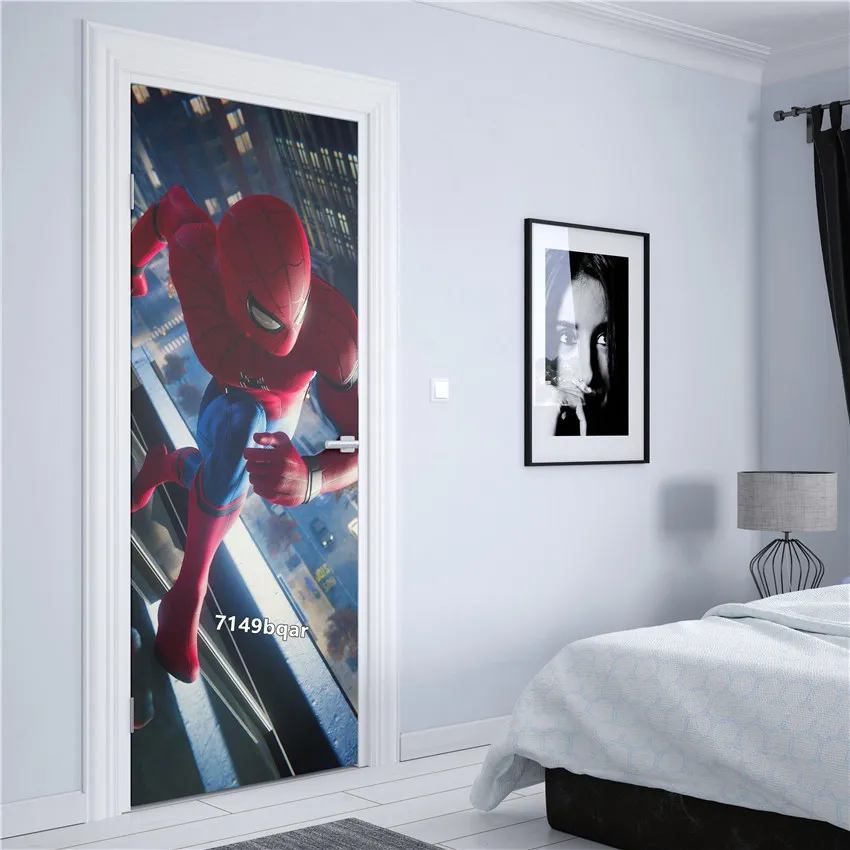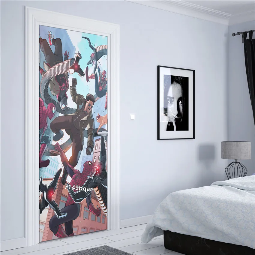 Водонепроницаемые ПВХ наклейки на дверь с супергероями Marvel, Мстители, Человек-паук, декор для детской спальни, настенные художественные плакаты, наклейки
