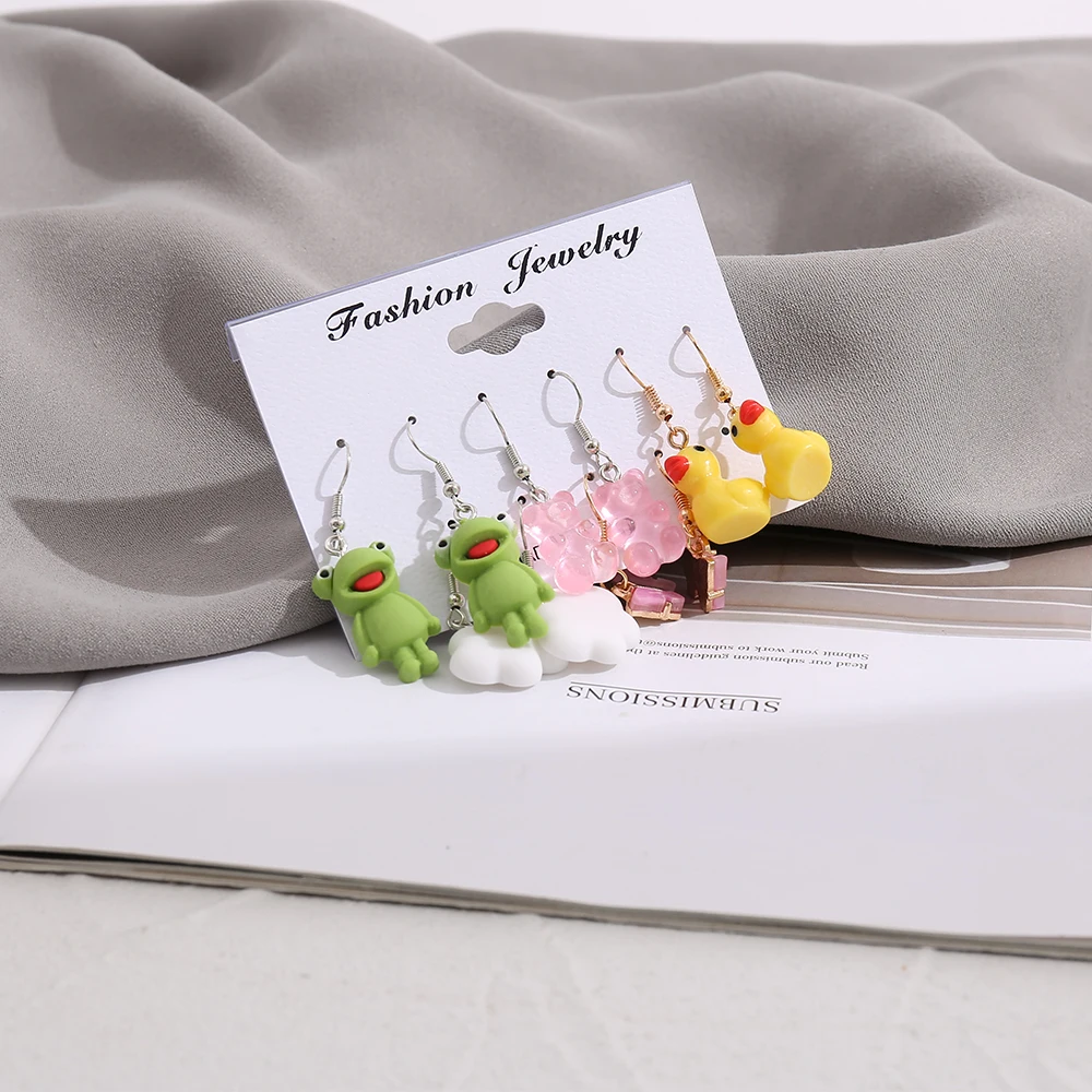 Модные серьги-подвески в виде животных, лягушки, утки, облака, жевательный медведь, серьги-подвески геометрической формы, крупные украшения для женщин, девочек, детей, ювелирные изделия в стиле панк, 5 комплектов