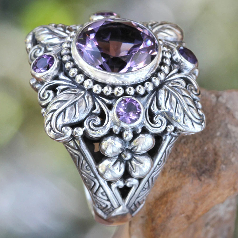Стеклянные аксессуары для растений, кольцо с фиолетовым большим кристаллом, рамка для женской модели, серебристого цвета