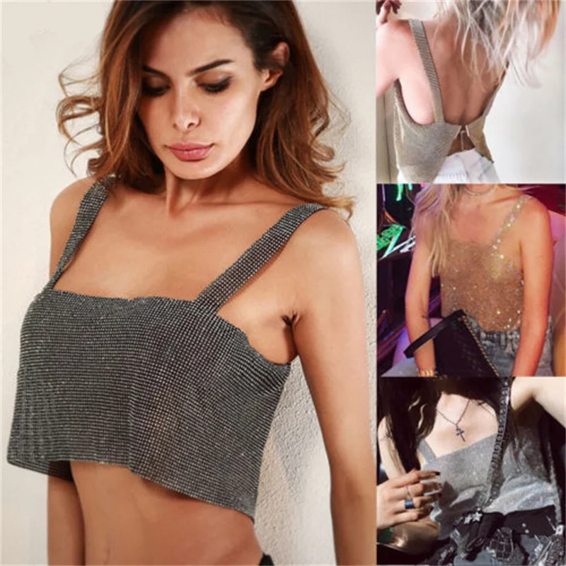 Летний сексуальный женский регулируемый Топ с блестками, Женский клубный Топ для вечерние, с кристаллами, сетчатый Топ для женщин