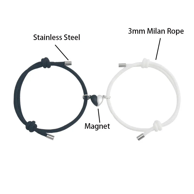 Романтический магнитный браслет для пары, регулируемый, черный, белый, в форме сердца, подарок для влюбленных