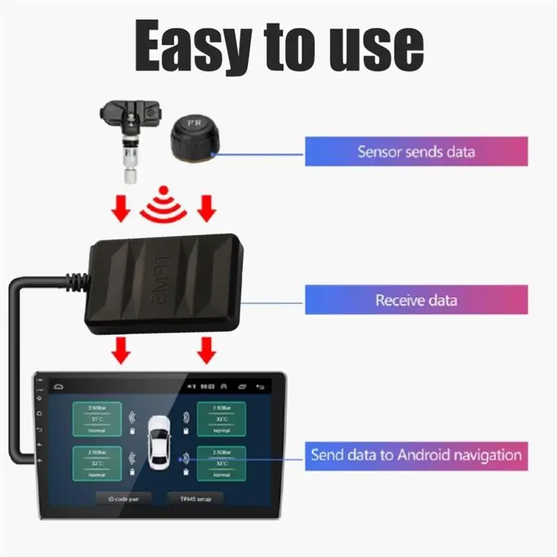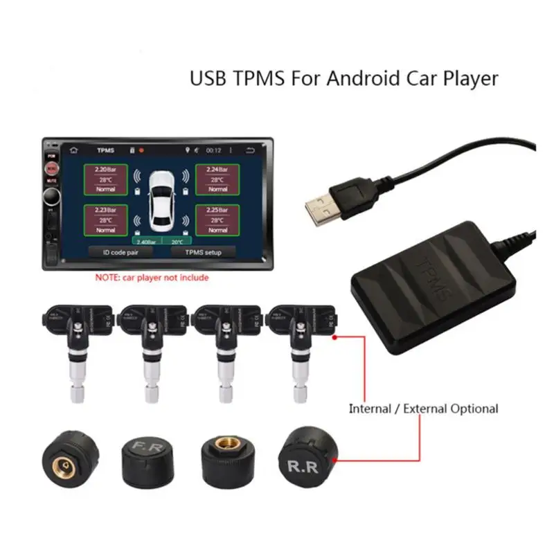 Точки пули:1. Совместимость с автомобильным проигрывателем Android/системой контроля давления в шинах, совместимой с навигацией GPS на базе Android.2. Поддержка операционной системы, совместима с Android 4,0 и выше.3. Приемник системы контроля давления в шинах может быть подключен к совместимому с Android автомобильным DVD через порт USB.4. Данные о давлении и температуре шин отображаются на совместимом с dvd-экраном для автомобиля Android.5. Когда происходит аномалия, звуковой сигнал будет выдан через динамик автомобиля и экранную сигнализацию.6. Предотвращает прокол шин, продлевает срок службы шин и экономит топливо. Когда шина начнет работать, датчик автоматически проснется.7. Быстрое обновление данных о давлении и температуре в шинах для совместимого приложения для системы мониторинга давления в шинах Android.8. Автоматический сон после парковки для экономии энергии.