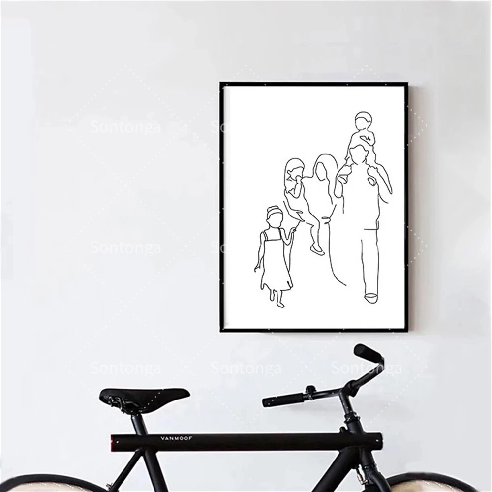Папа мама сын дочь милая семья Картина на холсте Абстрактная линия рисунок на стену художественный плакат минималистский принт Декор для дома подарки