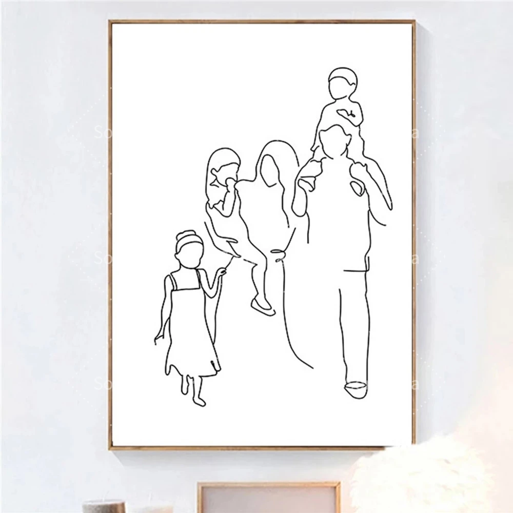 Абстрактный Рисунок линий папа мама сын дочь Милая семейная Картина...