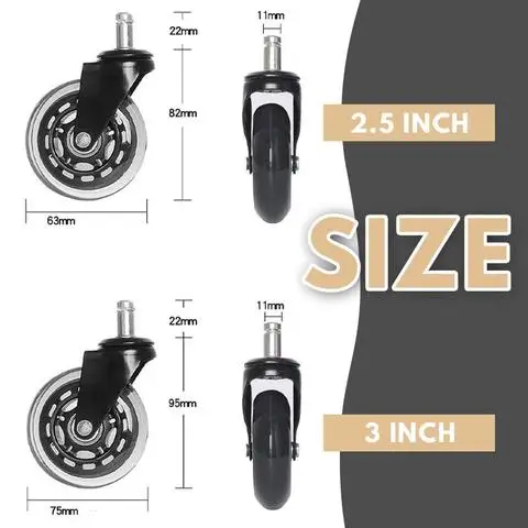 Эти универсальные колеса безопасны дляИспользуется на дереве, твердой древесине, плитке, ковре, ламинате, виниле, бамбуке и других полах.Больше не шумит. Никаких царапин и следов.