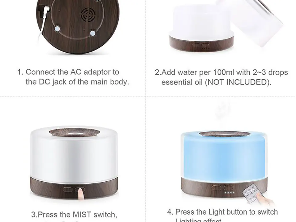 Ароматерапевтический диффузор, увлажнитель воздуха светодиодный светильник кой, домашний комнатный ультразвуковой распылитель холодного тумана, аромадиффузор с эфирным маслом 300, 400 мл, 500 мл