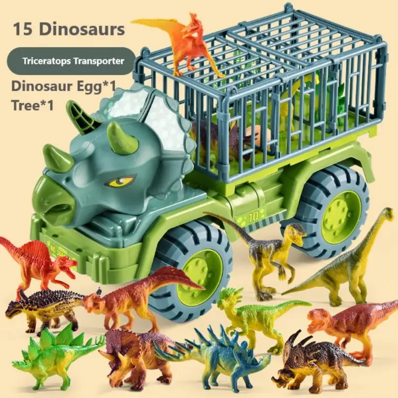 Транспортный прицеп динозавра-этот грузовик-динозавр имеет большой прицеп, который может быть открыт и закрыт, чтобы держать несколько динозавров. Детям понравится играть с грузовиком.