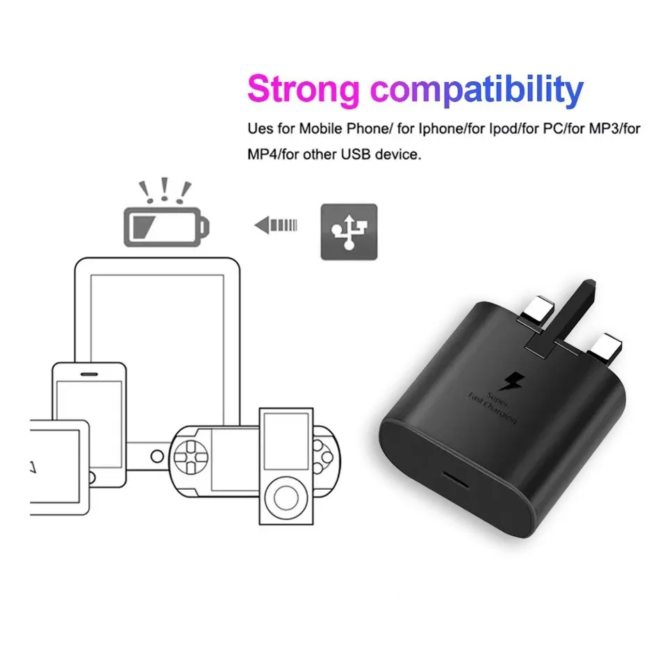 Оригинальное быстрое зарядное устройство Samsung, USB C адаптер мощностью 25 Вт, с вилкой Стандарта ЕССШАВеликобритании для Galaxy Note 10 10 + 20 A90 A80 A70 A60 A50 M31S M51