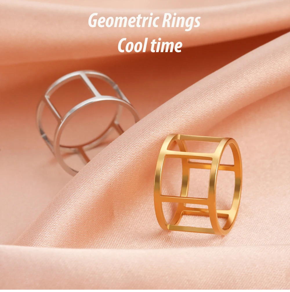 Золотистые полые геометрические кольца COOLTIME для женщин, парные кольца 2022, трендовые минималистичные ювелирные изделия из нержавеющей стали, подарки на день рождения