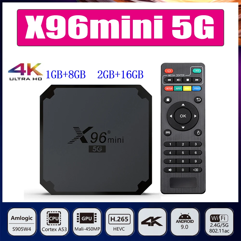 ТВ-приставка X96 Mini, Android 9,0, 1 ГБ, 8 ГБ, 2 ГБ, 16 ГБ, 2,4G и 5G