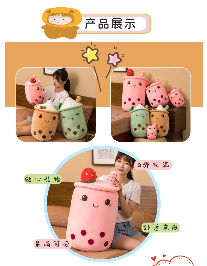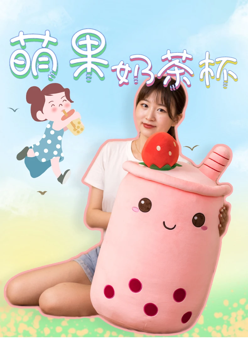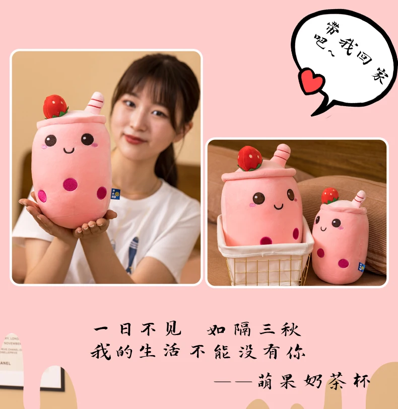 Милый Боба молочный чай плюшевая игрушка мягкий плюшевый яблоко розовый клубника молочный чай подушка девочка подарок на день рождения