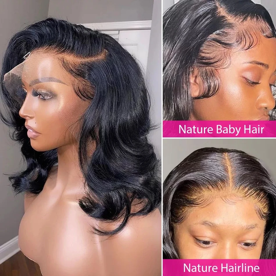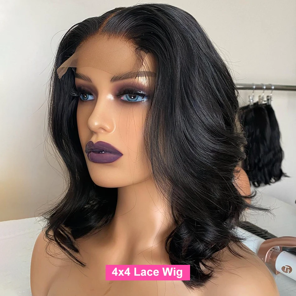 HD 250 плотность 4x4 закрытие парик короткий боб 13x 6 кружева спереди человеческие волосы тела волна парики для черных женщин Бразильский Натуральный фронтальный парик