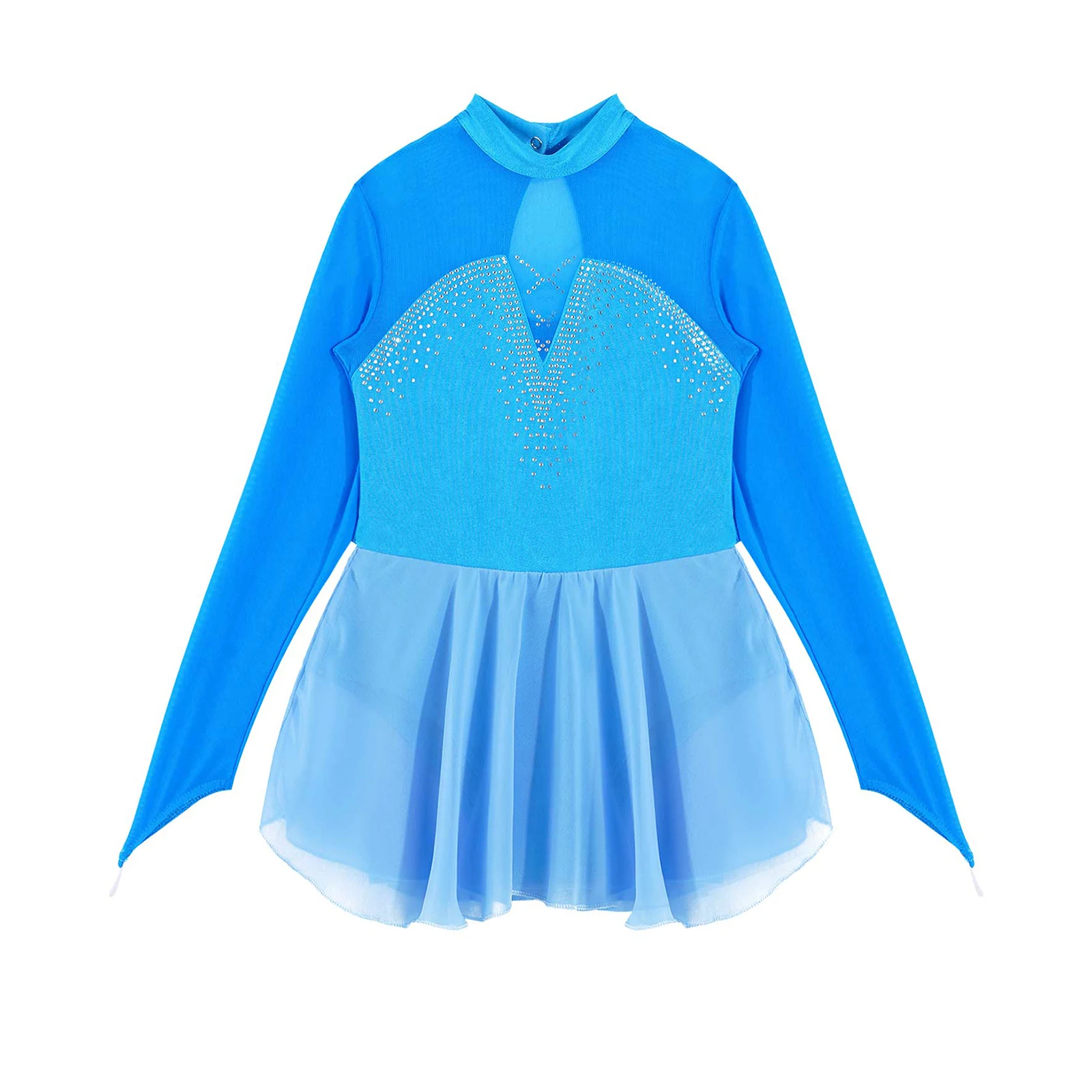 Особенности: Платье для катания на коньках изготовлено из полиэстера, сетчатого и шифонового материала, ручная стирка. Таблица размеров означает возраст для девочек, но только для общего руководства. Сетчатый длинный рукав, круглый воротник, открытая спина с отверстиями и модный стиль пэчворк, сверкающие стразы спереди и сзади. 1 слой гофрированной шифоновой юбки прикреплен вокруг талии, трусики подкладка трико платье для повышения уверенности и мастерства. Подходит для занятий танцами, гимнастическое упражнение, выступления на сцене, соревнований на коньках, фотосессий, дней рождения и т. д.