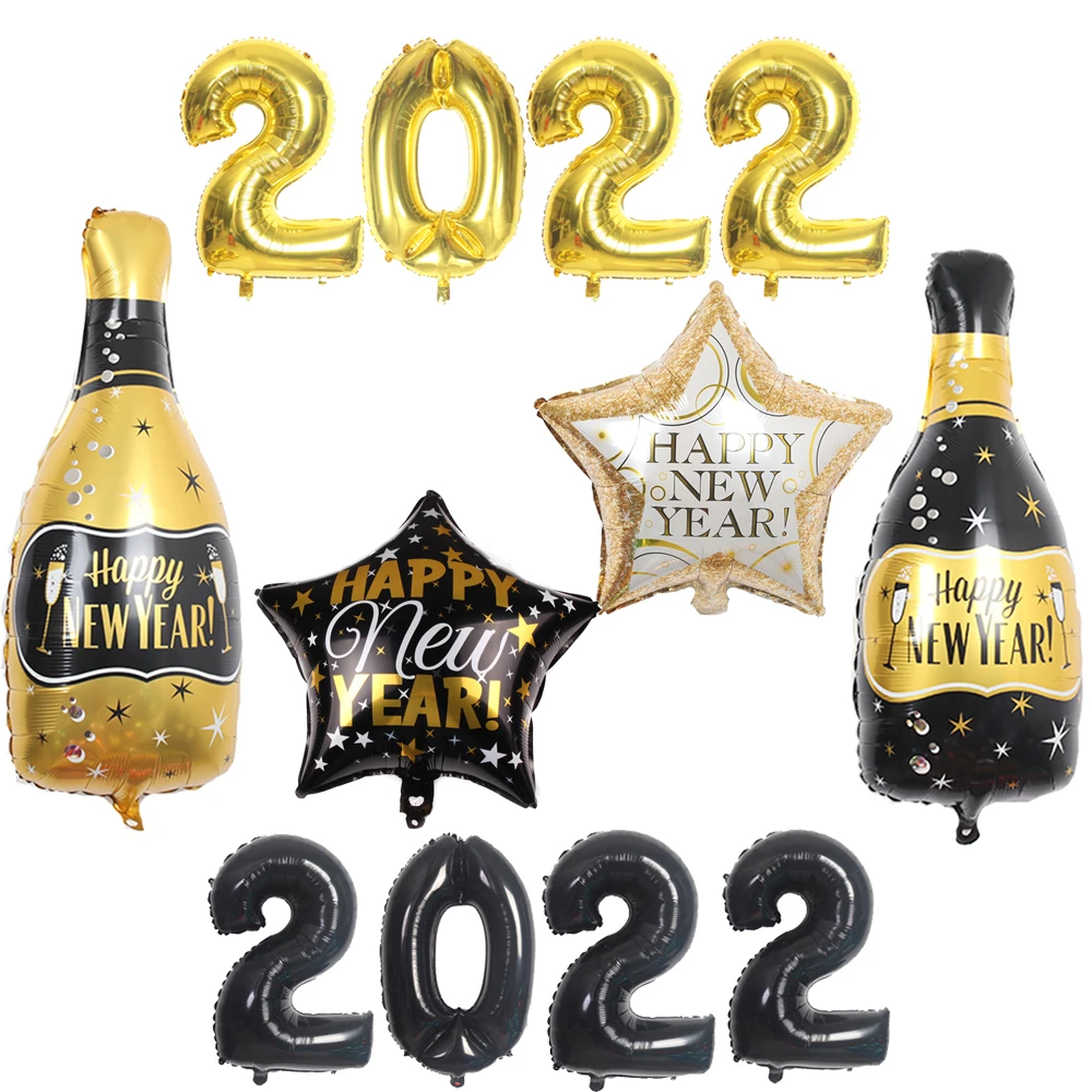 С Новым Годом 2022 украшения бутылки вина фольгированные шары для рождества домашнего декора воздушные шары для детского душа вечерние Noel Globos