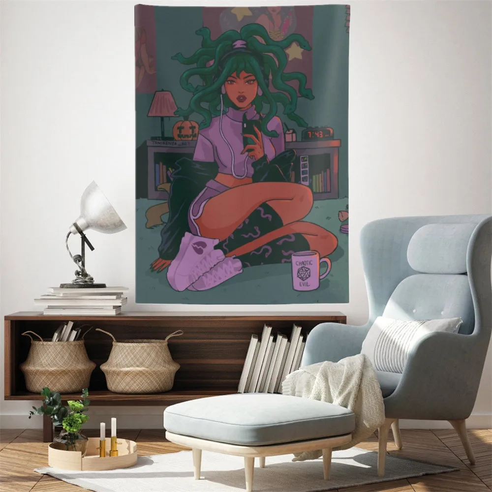 Милый Декор для комнаты Medusa, гобелен в стиле аниме, настенная подвеска, эстетические розовые гобелены, ткань, украшение для колледжа и общежития
