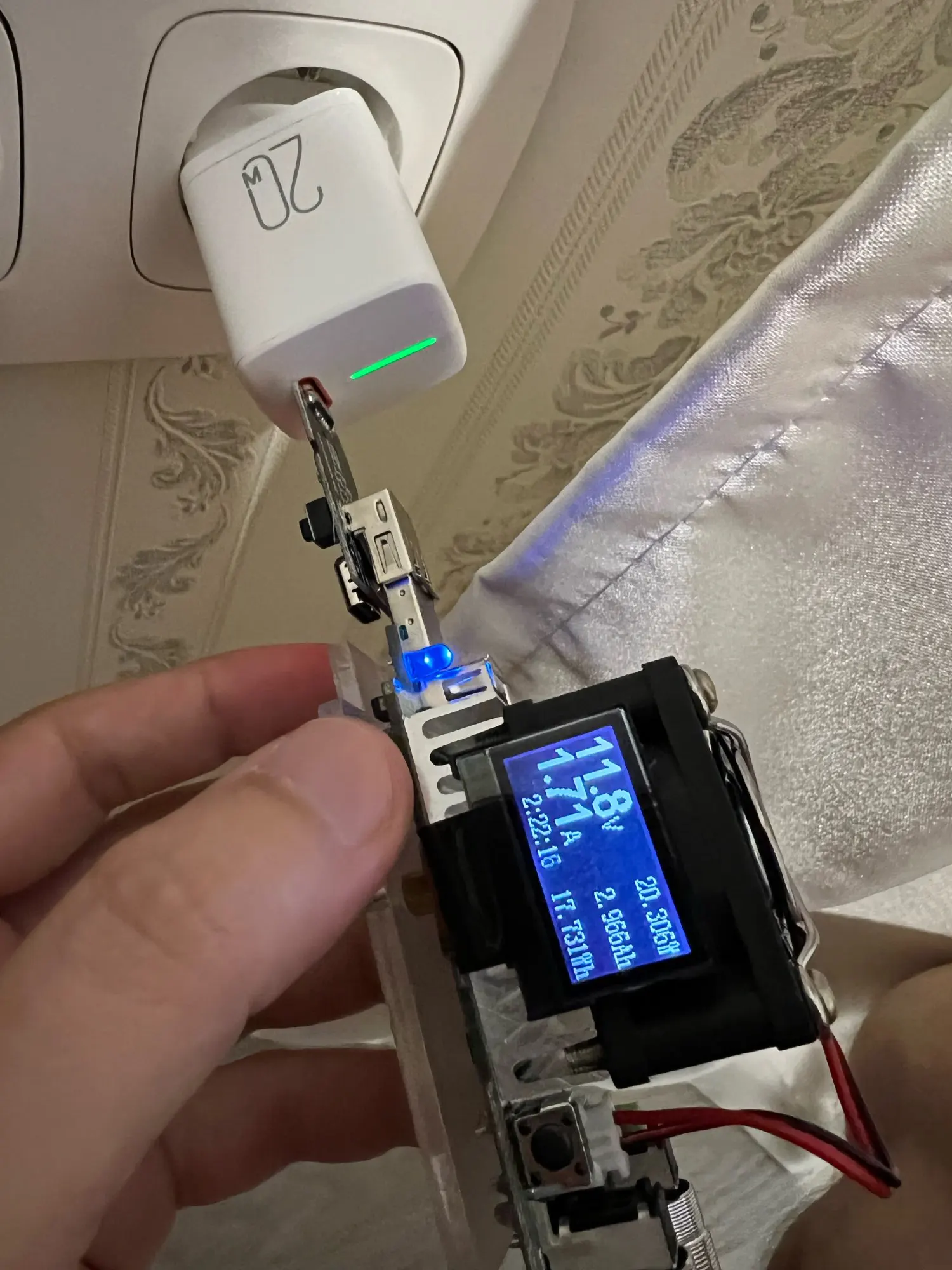 Диод горит не так ярко, как на фото, но это, скорее, плюс. Iphone 11 заряжает чуть слабее, чем на 20 ватт, Ipad 2019 в районе 13,5 ватт. OnePlus 9r - около 5,5 ватт, но тут скорее виноват кабель. Хорошего для проверки нет в наличии. Все показания мощности проверял через ваттметр.
