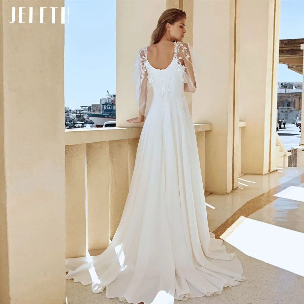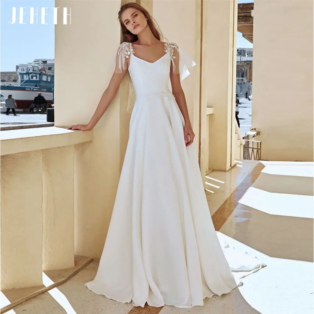 Элегантное свадебное платье JEHETH с V-образным вырезом и аппликацией для женщин, с коротким рукавом, а-силуэт, очаровательные свадебные платья 2021 с поясом