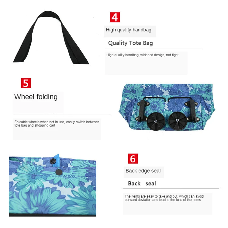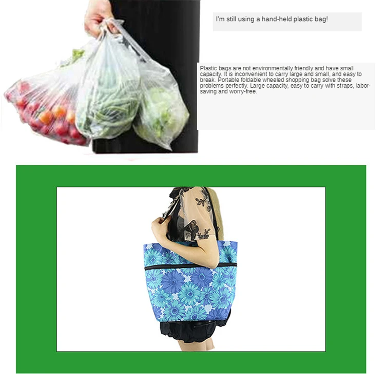 Складная многоразовая сумка-тележка для покупок, водонепроницаемая складная хозяйственная тележка с телескопической ручкой и колесами для женского белья