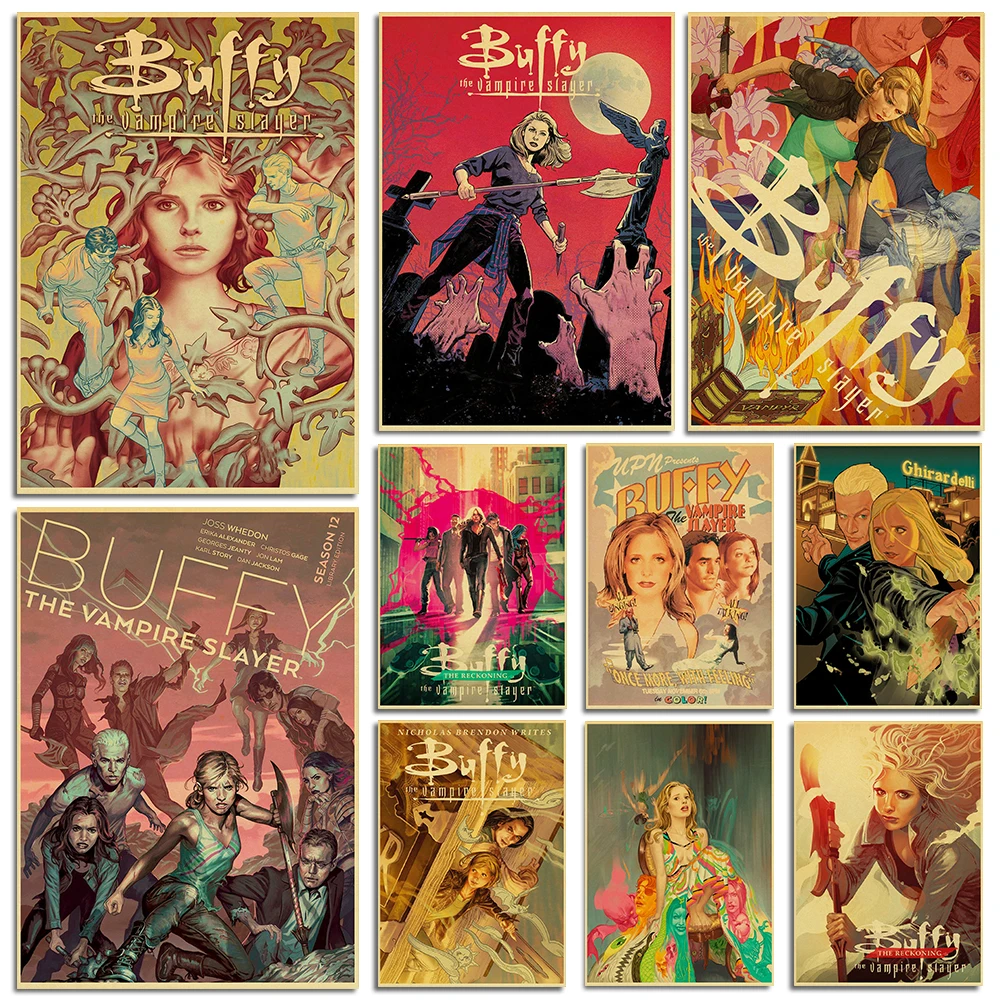 Мультфильм акварельный стиль винтаж крафт-бумага постер вампир Slayer Buffy Американский ТВ серия стикер на стену для домашнего декора бара