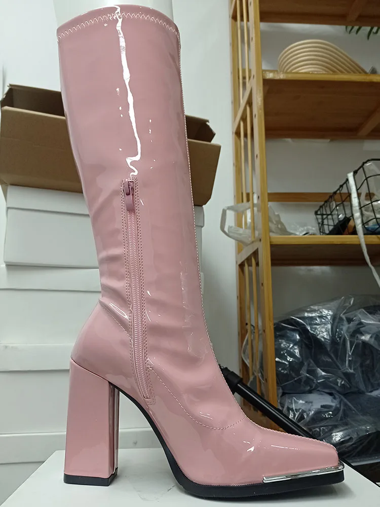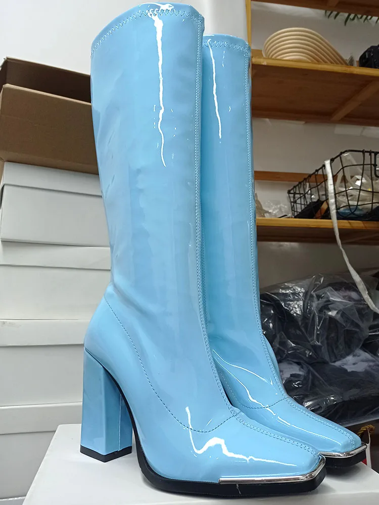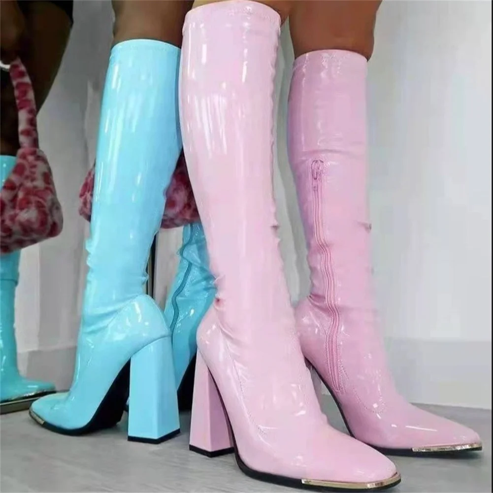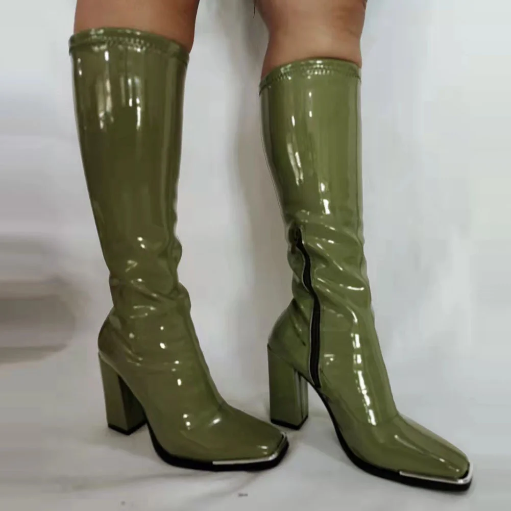 Брендовые дизайнерские женские современные сапоги на платформе с квадратным каблуком и молнией 2021 Зимние удобные модные привлекательные женские сапоги до колена