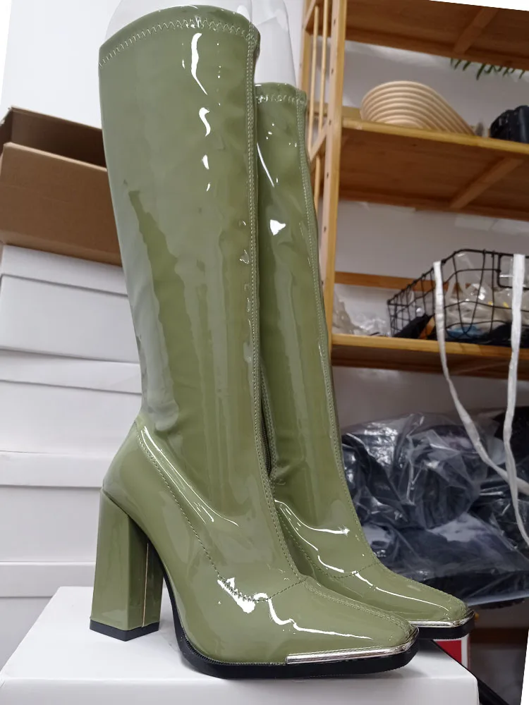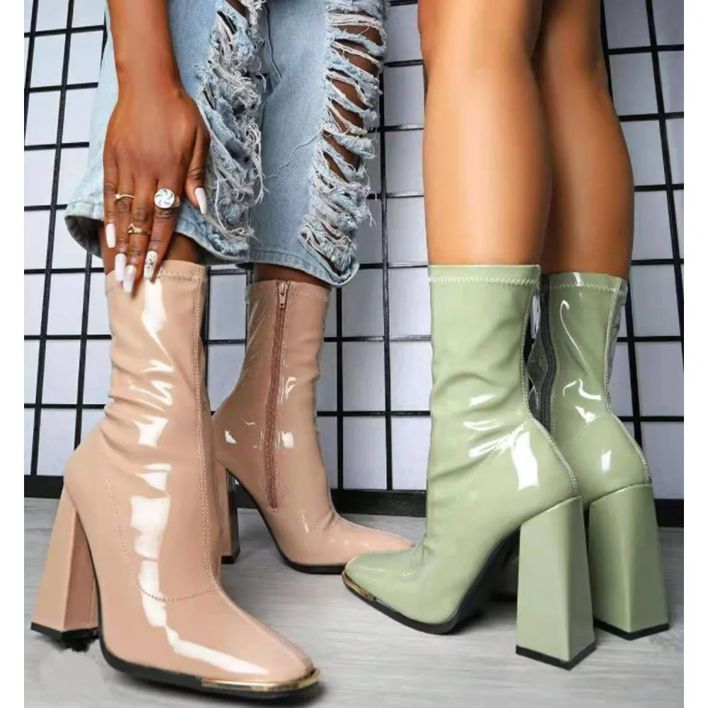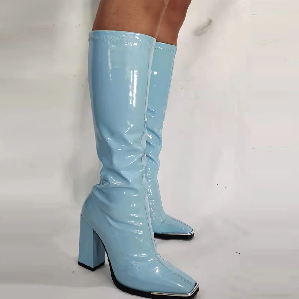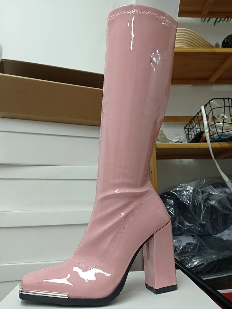 Брендовые дизайнерские женские современные сапоги на платформе с квадратным каблуком и молнией 2021 Зимние удобные модные привлекательные женские сапоги до колена