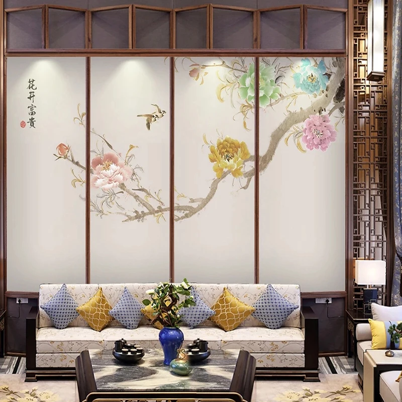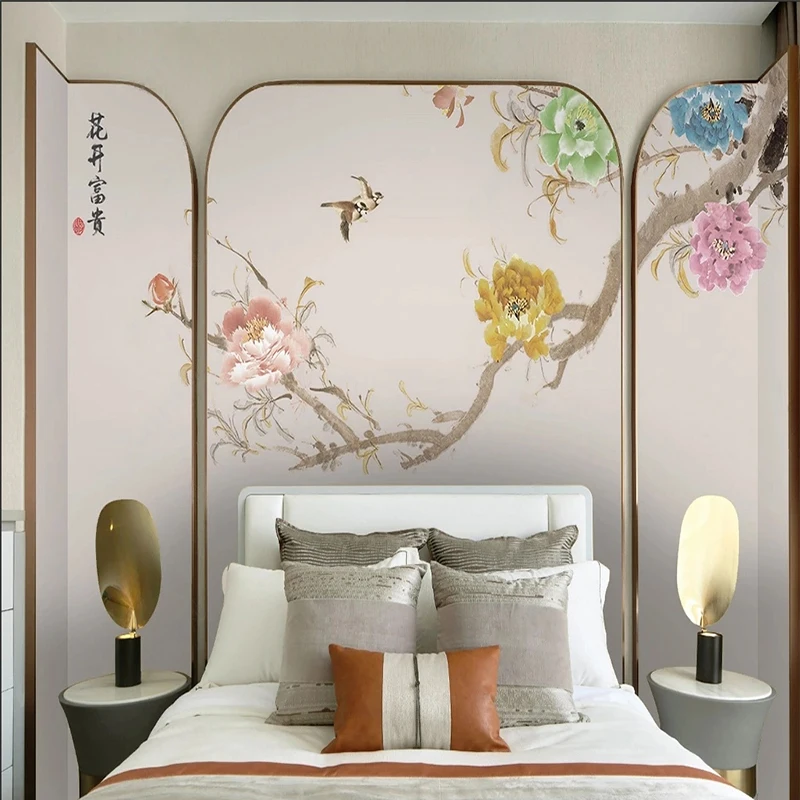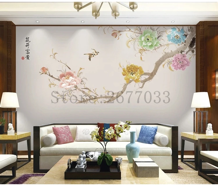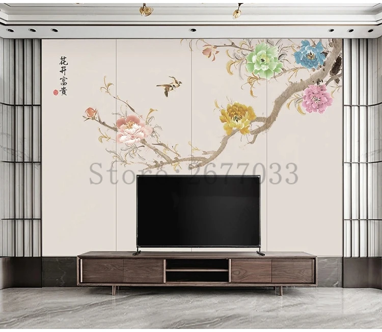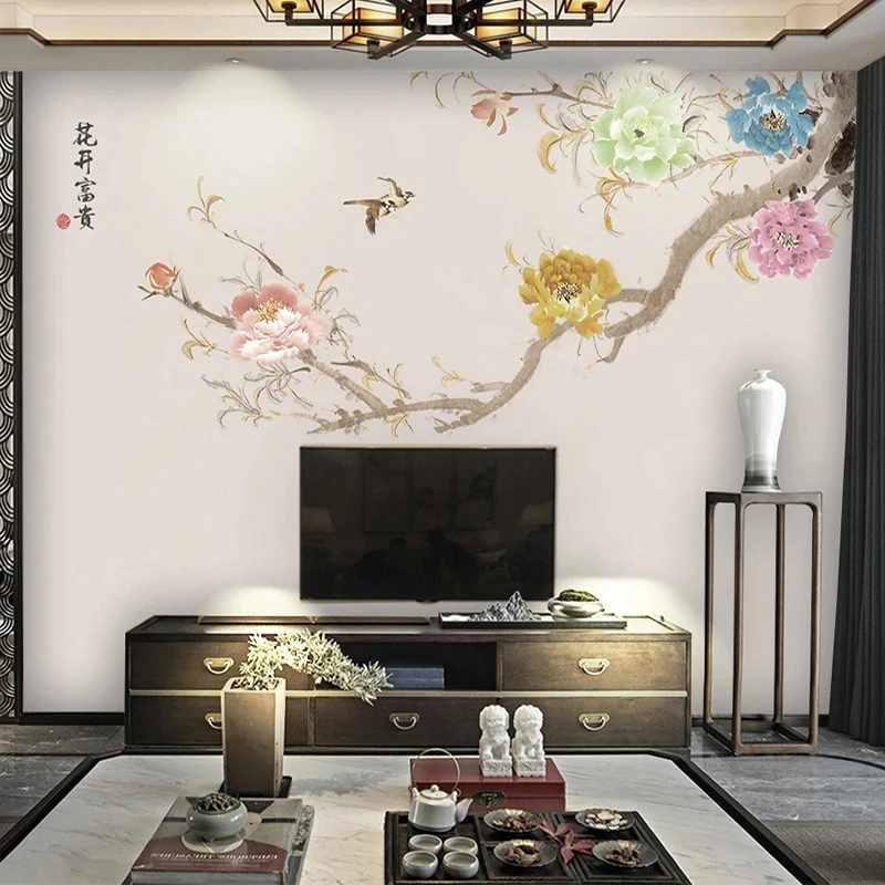 Настенная ткань в китайском стиле на заказ, фотообои с пионами для гостиной, спальни, телевизора, дивана, настенное покрытие, домашний декор