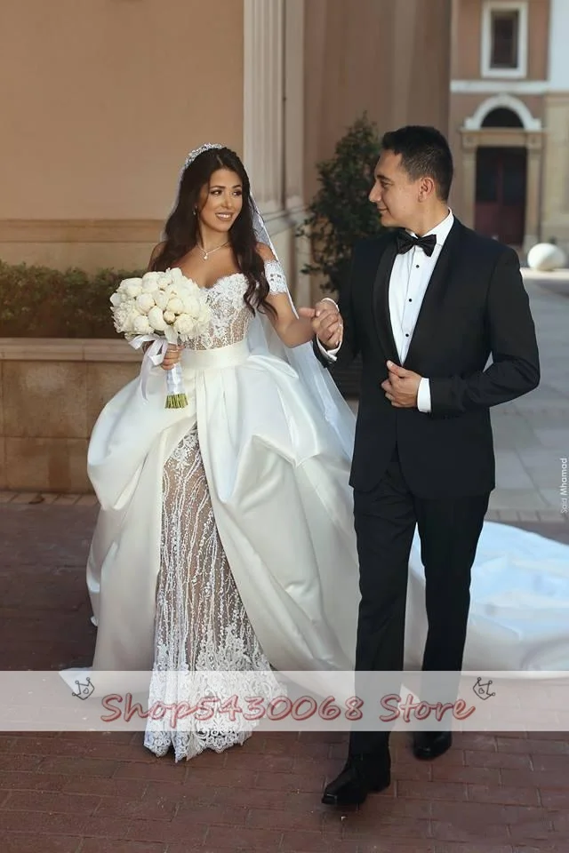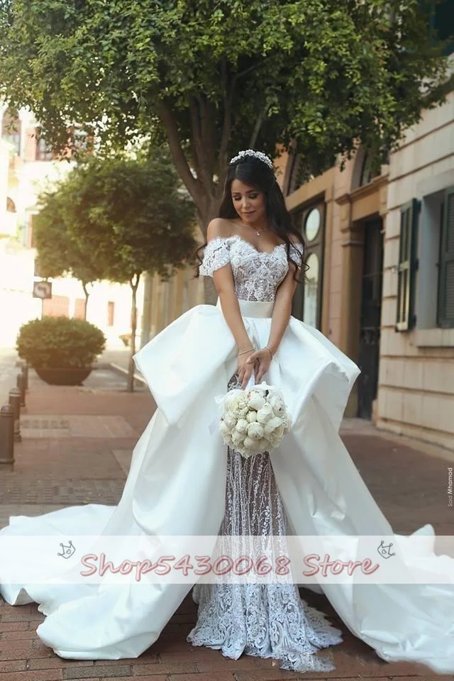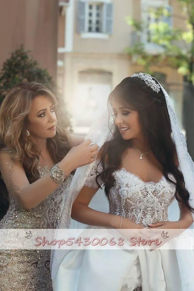 Свадебное платье Дубай из двух частей со съемным шлейфом, кружевные свадебные платья с открытыми плечами, элегантное винтажное свадебное платье