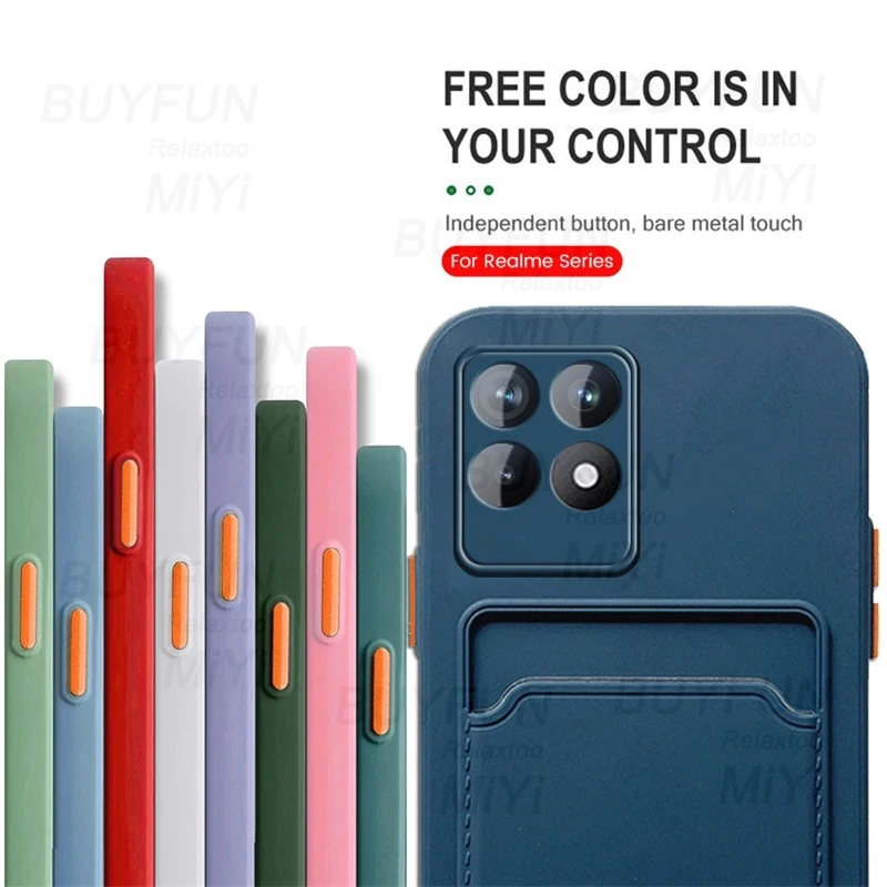Квадратный Тонкий силиконовый чехол для телефона с отделением для карт для Realme8 Realmy Realmi 8i 8 i Relme Realme 8 Pro 8Pro Shockrpoof Coque