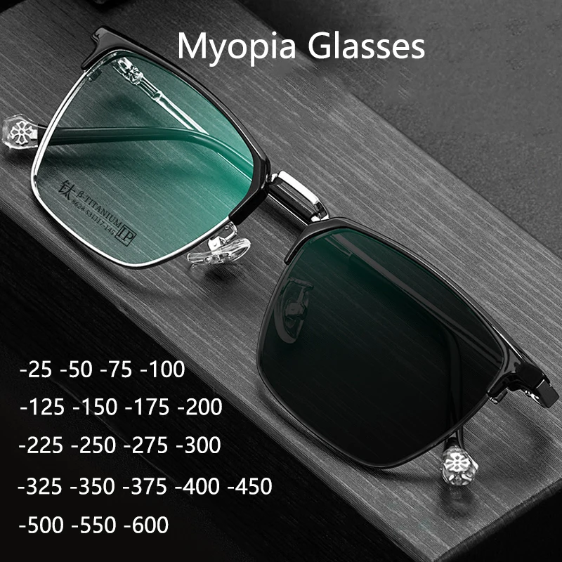 Очки титановые для близорукости для мужчин и женщин, фотохромные ультралегкие в ретро стиле, Полуободковые очки для близорукости с диоптриями