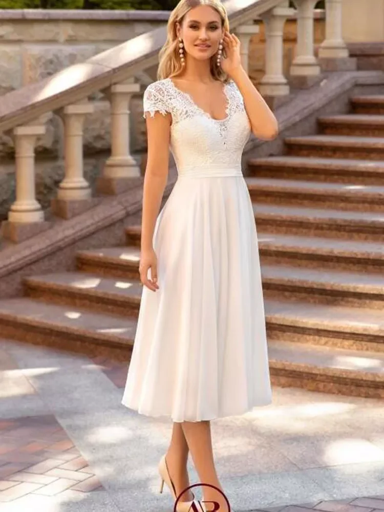 Платье для выпускного вечера с V-образным вырезом и коротким рукавом