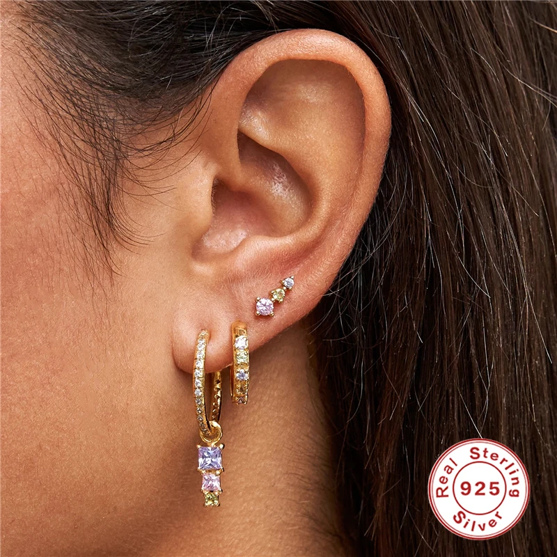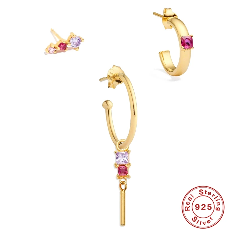 Женские серьги-гвоздики из серебра 925 пробы с розовым камнем