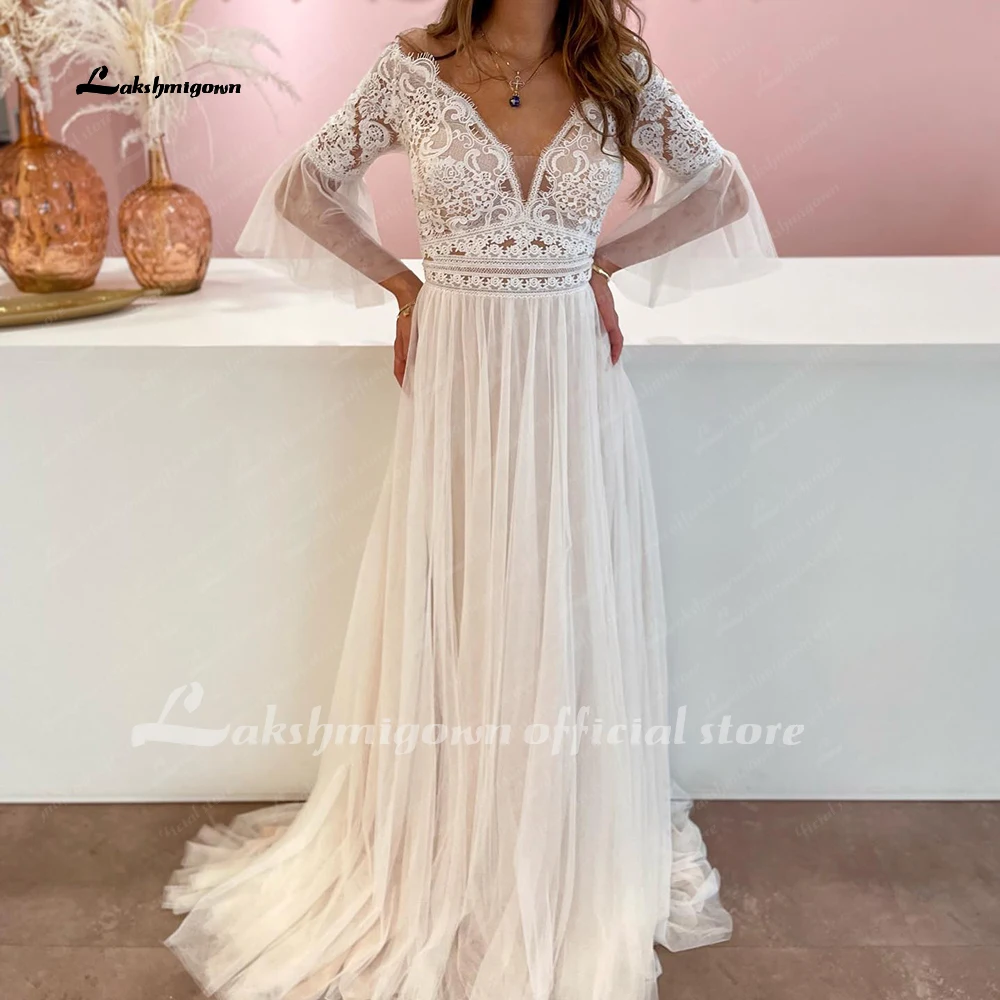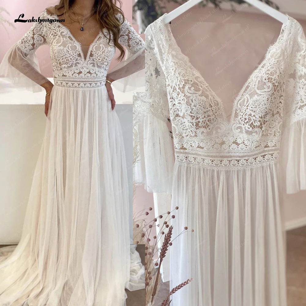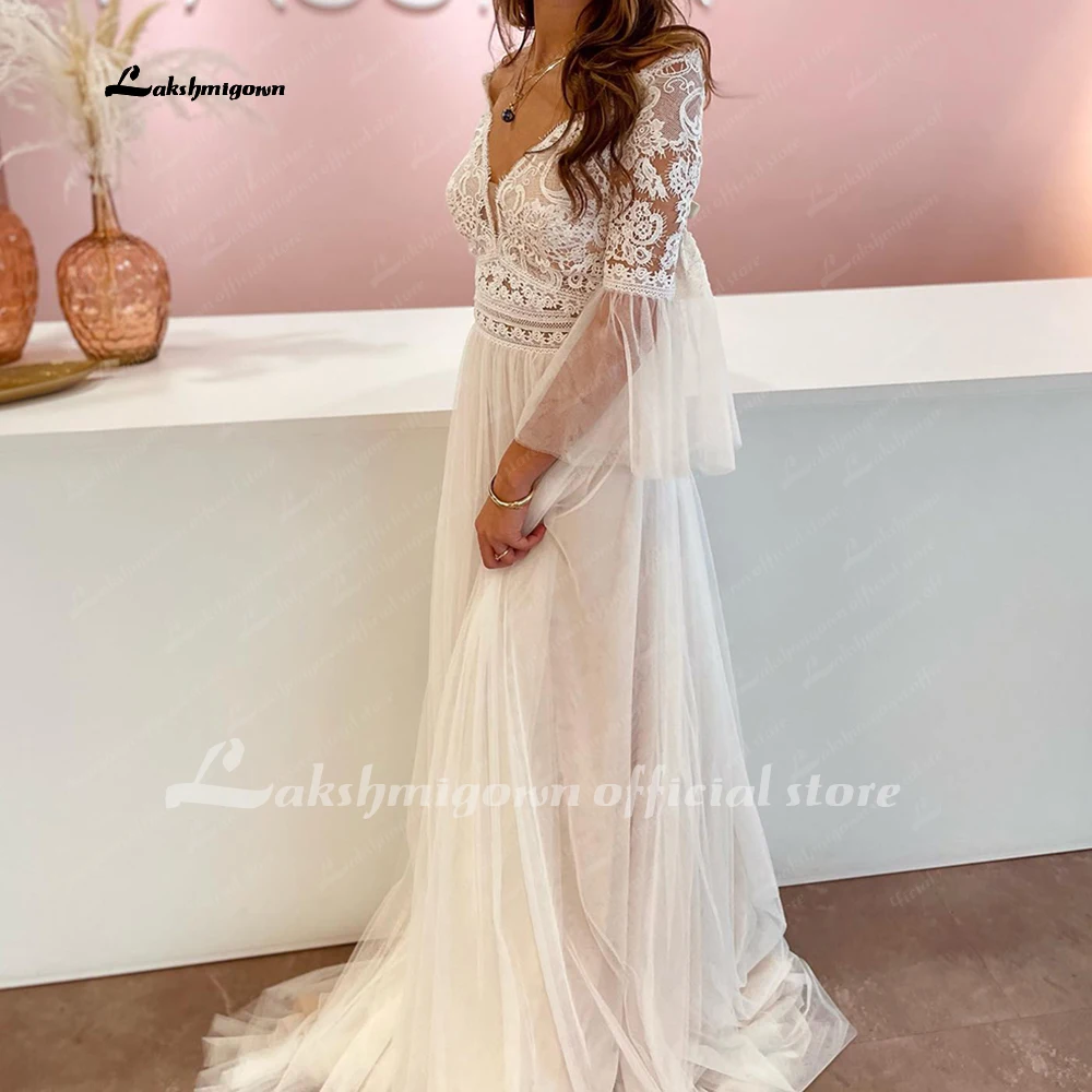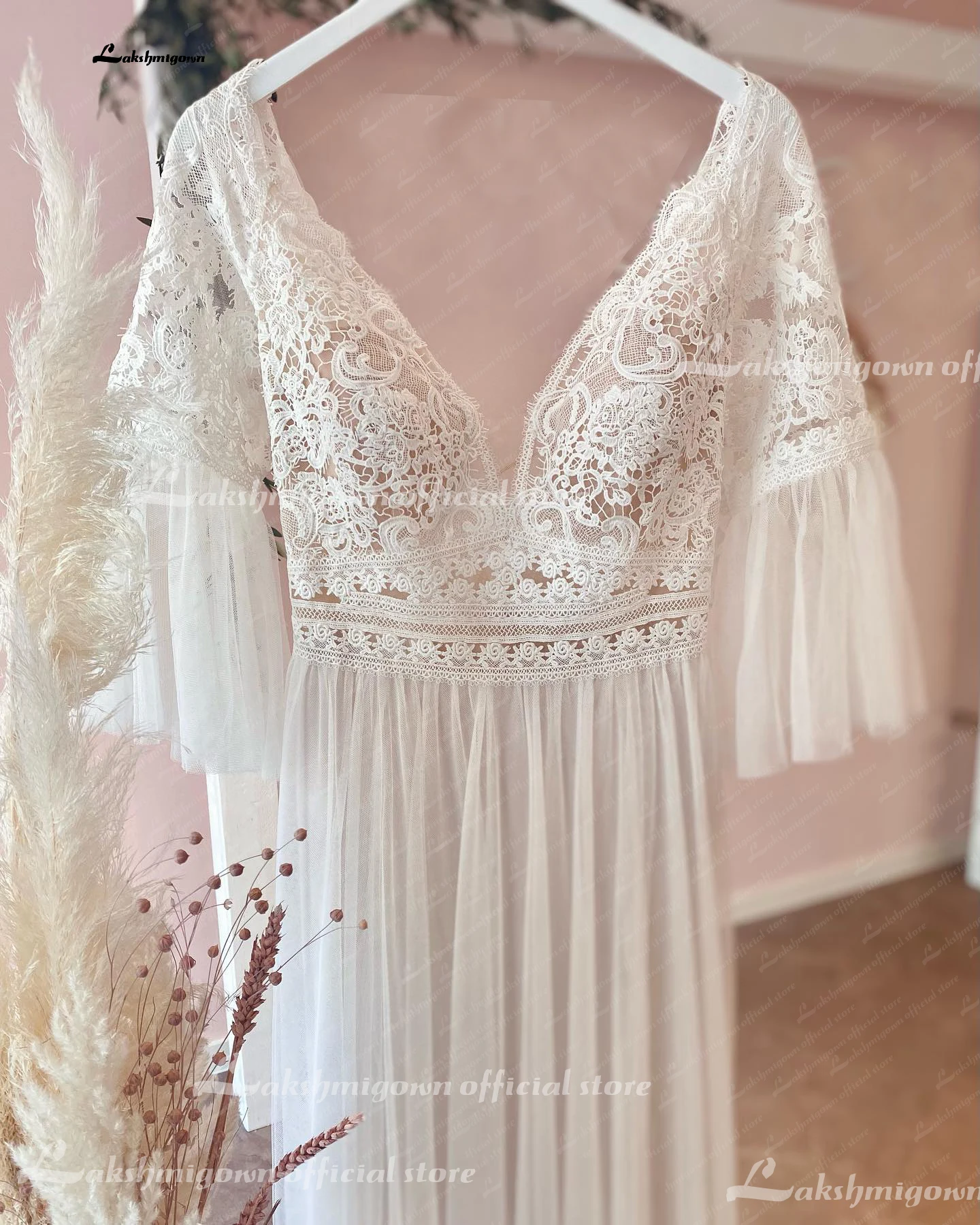 Lakshmigown пляжные свадебные платья с V-образным вырезом, женское свадебное платье с расклешенным рукавом, современное свадебное платье, свадебная одежда